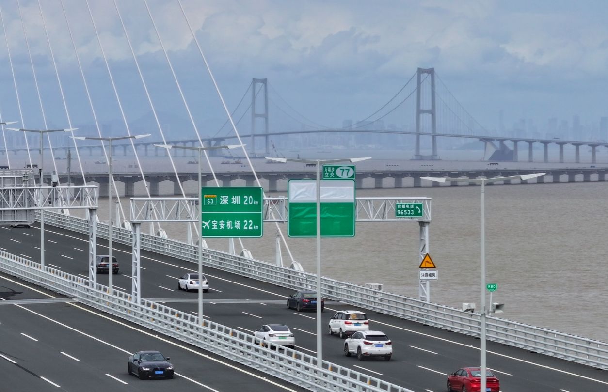 图为广东中山,车辆行驶在深中大桥上。(图片来源:中新社)