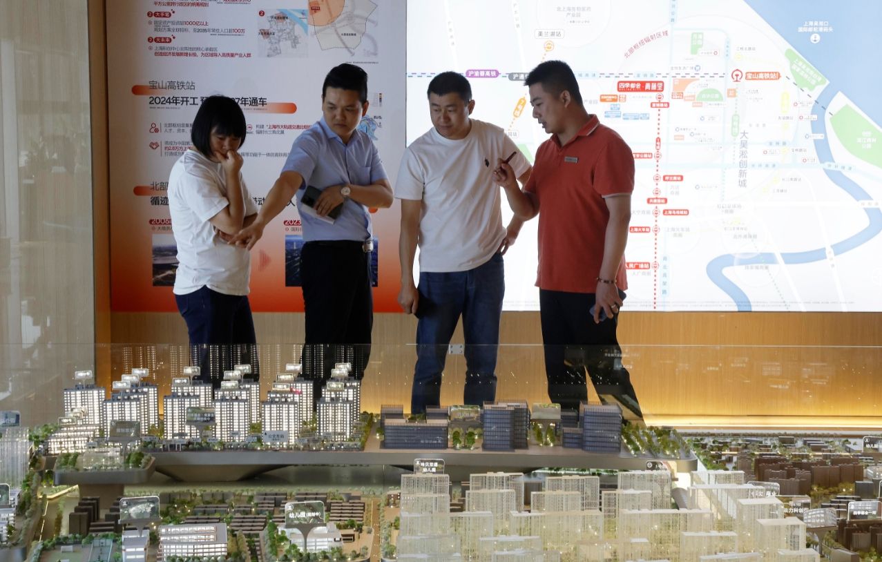 在上海市宝山区四季都会青藤里项目售楼处,客户进入售楼处咨询。(图片来源:中新社)