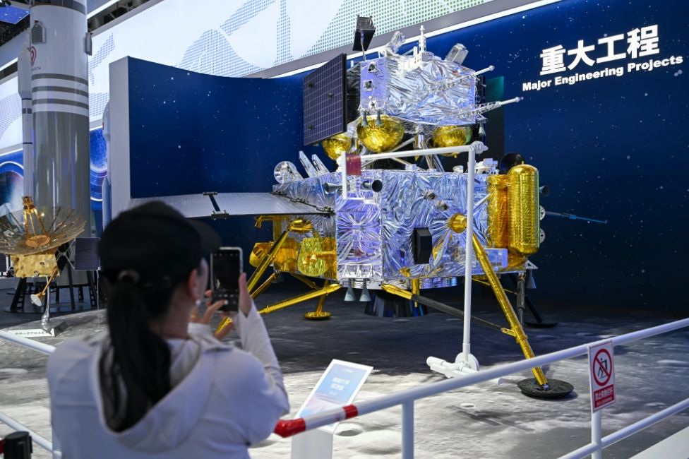 此次展示的“嫦娥六号”探测器模型。(图片来源:中新社)