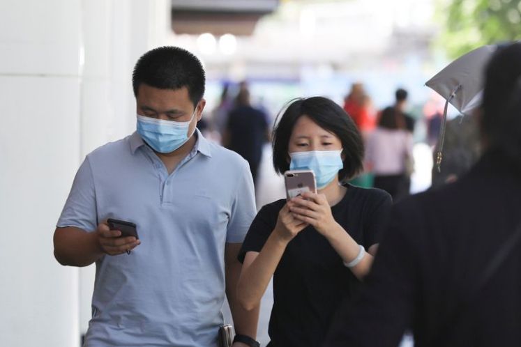 民众在北京街头浏览手机。(图片来源:中新社资料图)
