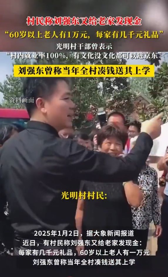 京东创始人刘强东再给乡亲发钱 60岁以上老人每人一万元