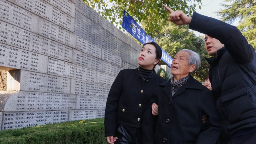2024年12月,艾义英参加南京大屠杀死难者家庭祭告活动。(图片来源:中新社资料图)