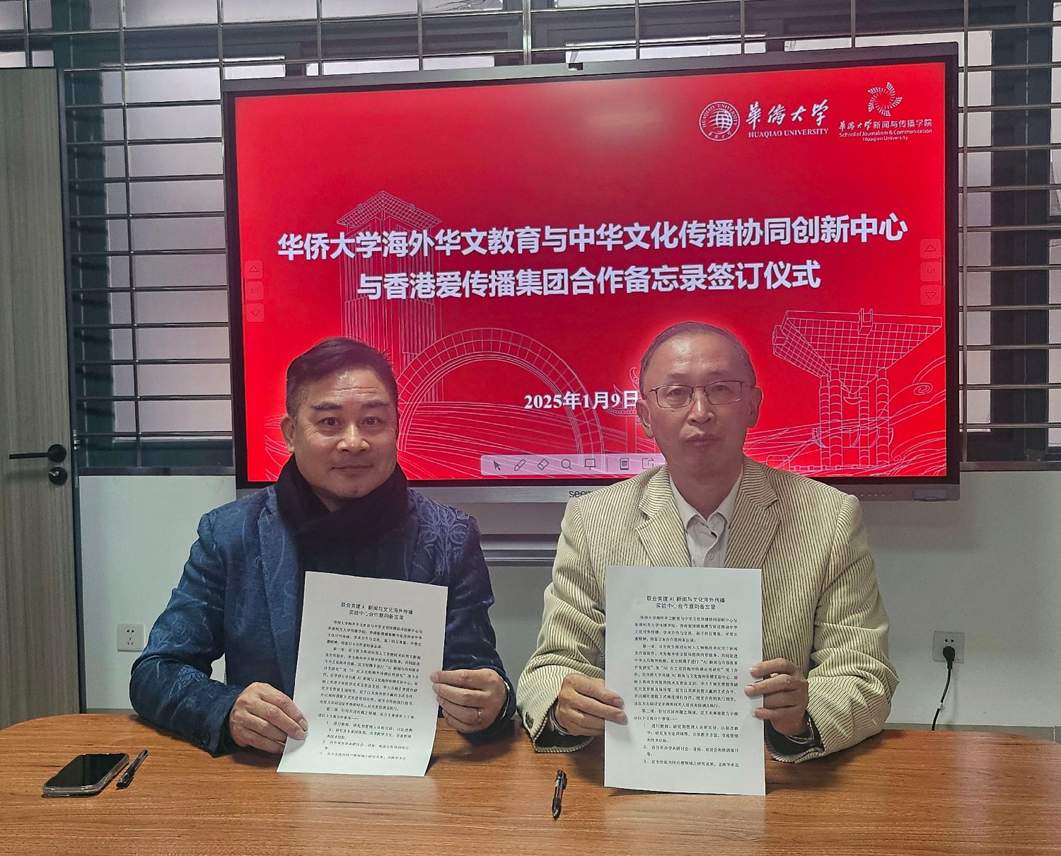 2025年1月9日,阳光和煦,海风轻拂,美丽的海滨城市厦门迎来了一个历史性的时刻。香港恒生大学传播学院院长曹虹(旨言)教授与华侨大学新闻与传播学院常務副院长王桂亭在此正式签署了一项具有深远影响的合作备忘录。双方宣布将携手共建人工智能新闻与内容研发基地,旨在通过前沿技术的革新应用,为全球文化传播领域注入新的活力,特别是为海外媒体提供更为丰富、高效且个性化的内容服务。
