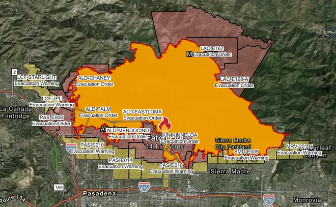 飞机在帕利塞兹山上投放水和阻燃剂,这是洛杉矶历史上破坏性最大的火灾,火灾面积又扩大了1,000英亩,总面积达到23,707英亩,数千栋豪宅化为灰烬。火势已得到11%的控制,火势向北和向东蔓延,促使官员在405高速公路以西发布了更多强制疏散令,因为大火使恩西诺和布伦特伍德的部分地区处于危险之中。