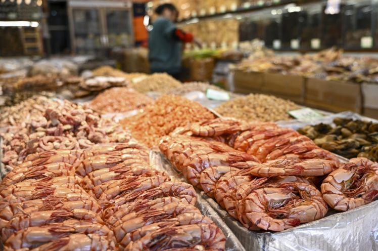 中新社11日报道,踏进一德路,海味干货特有咸香扑鼻而来。街道两旁,满满当当的海味干货摆在柜面上,增添喜庆氛围。市民客商穿梭在各个店铺之间,只需微微一嗅,便能辨别海味的品质优劣。从接近百元(人民币,下同)就能买到的干贝,到上千元甚至上万元的鲍参翅肚,这里能满足市民们不同需求。