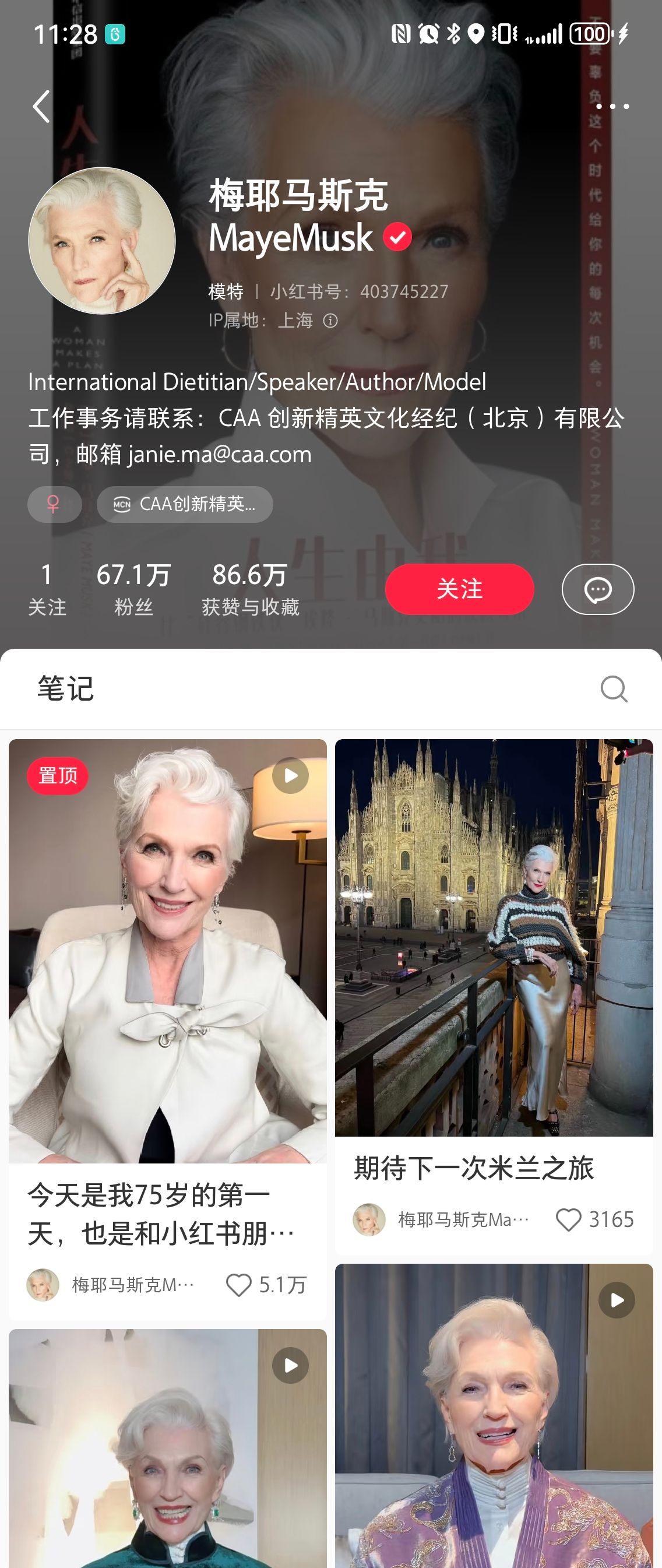 马斯克妈妈也是小红书忠实粉丝。(图片来源:小红书截图)