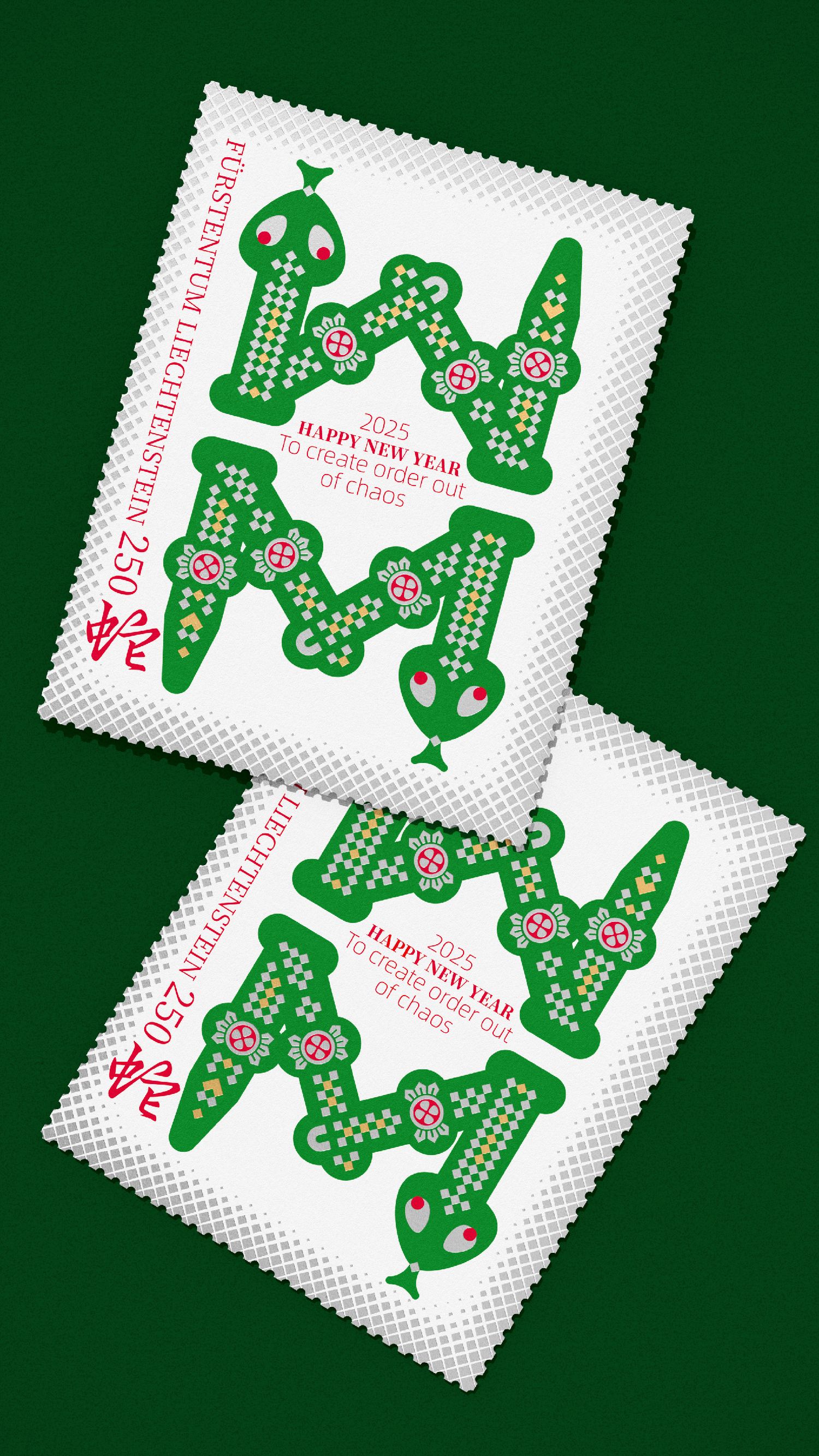 生肖蛇“走向世界”的过程中,还有一枚让人津津乐道的“麻将邮票”。在为“邮票王国”列支敦士登设计生肖蛇年邮票的过程中,潘虎及其团队将生肖文化与中国麻将元素进行全新组合。“麻将起源于中国,其规则是通过随机抓牌在混乱中创造秩序,我们也想以此来隐喻对当下世界的理性呼吁——在竞争中寻求合作,求同存异,在混沌中寻求秩序。”潘虎说。