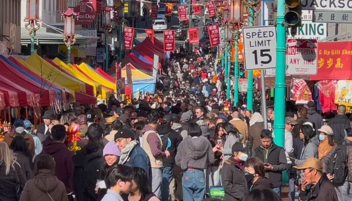 春节期间,旧金山华埠行人如织,十分热闹。(图片来源:中新社)