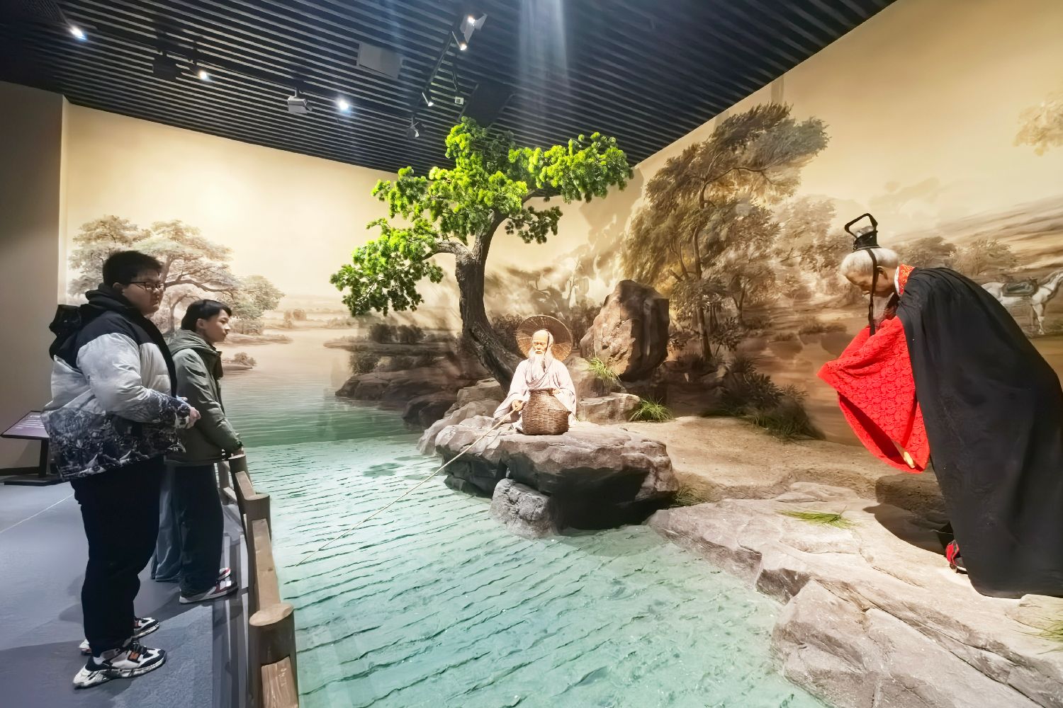 2月13日,游客在临泉县博物馆参观“姜尚故里”展厅。(图片来源:中新社)