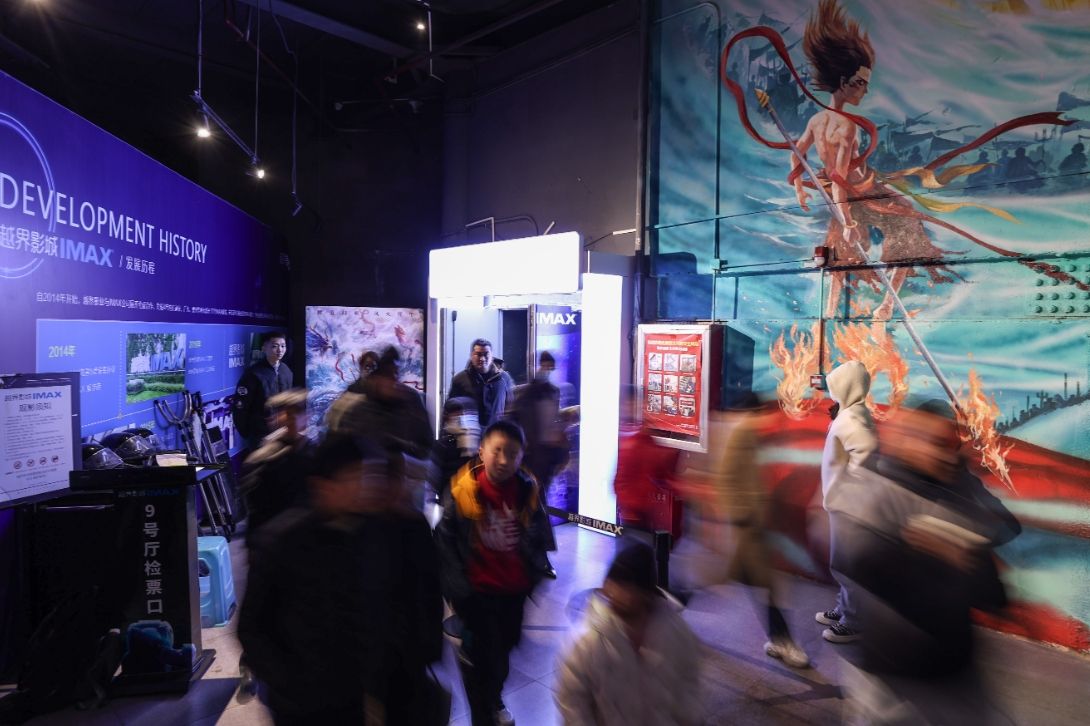 23日,《哪吒2》放映结束后观众走出IMAXGT厅。(图片来源:中新社)