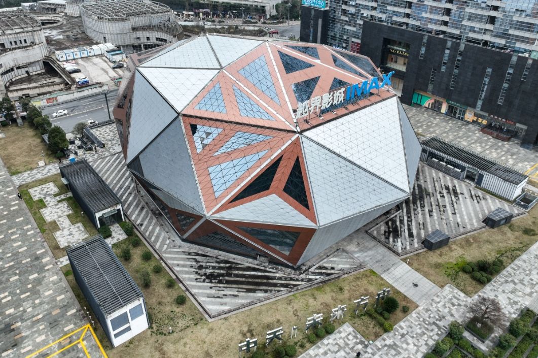 23日,航拍贵阳省贵阳市云岩区的一家IMAX影院外景。(图片来源:中新社)