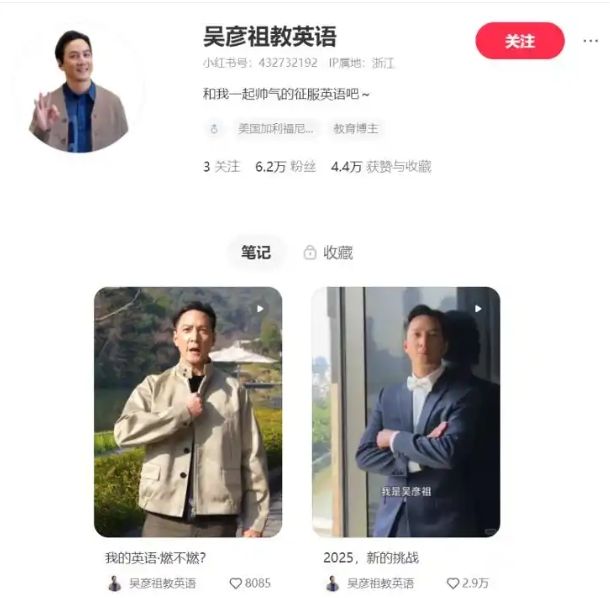 吴彦祖教英语账号截图。(图片来源:小红书)