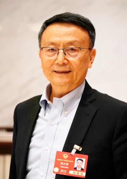 2025年3月两会期间,贾庆国接受采访。(图片来源:中新社)
