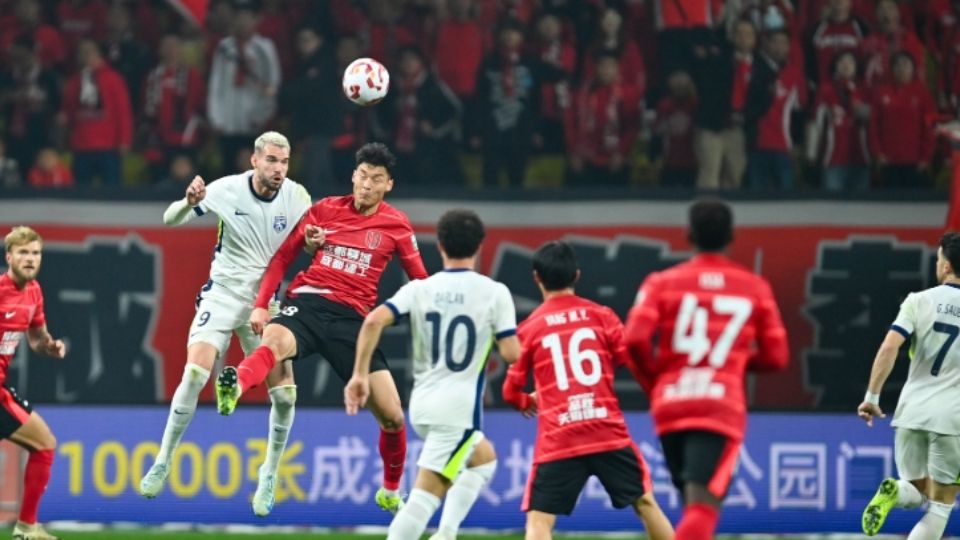 2月22日,2025中国足球超级联赛(简称“中超”)成都蓉城队(红衣)主场迎战武汉三镇队,并由此拉开了新赛季大幕,最终成都蓉城队以1:0的比分赢得首场胜利。(图片来源:中新社)