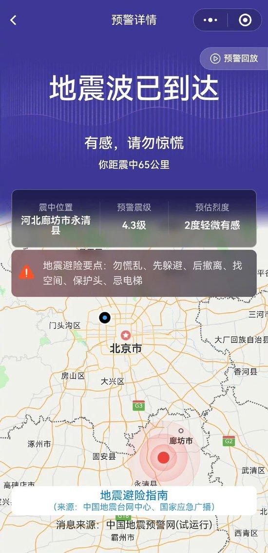 震中距北京市55公里北京天津有震感