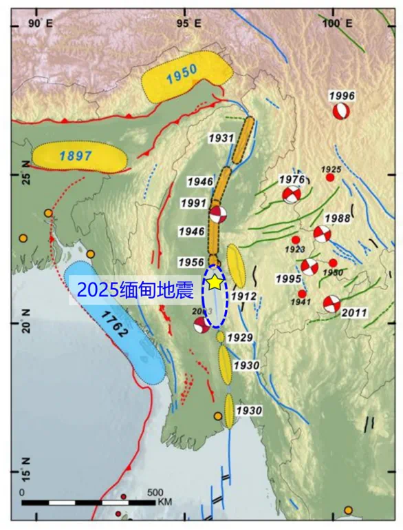 2025年3月28日14时20分缅甸发生了7.9地震,总的破裂长度约300公里,持续时间约90秒。下面从地质科学的角度来谈谈此次缅甸大地震。