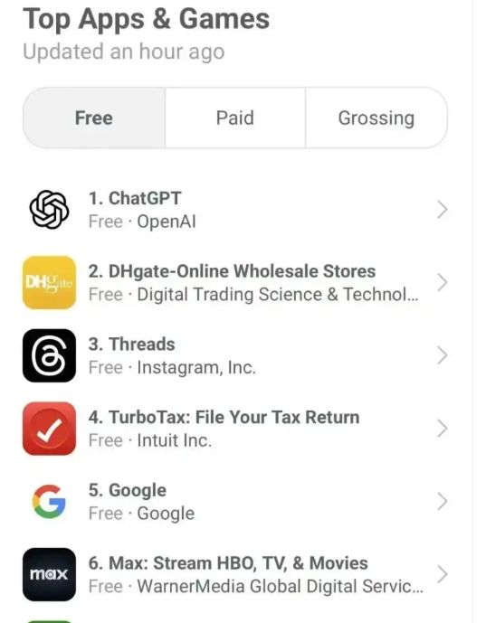 【本报综合讯】近日,中国跨境电商应用DHgate(敦煌网)在美国爆火,该应用已跃居苹果美国应用商店免费应用排行榜的第二位,仅次于ChatGPT。