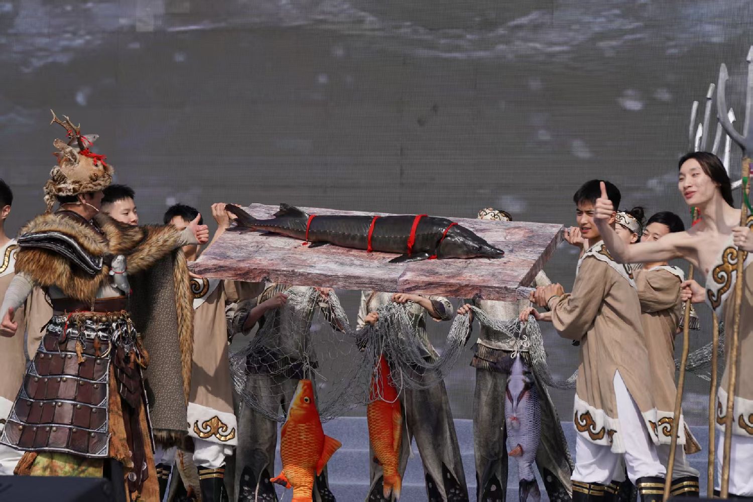 “乌苏娃娃”演绎的童声合唱《开江谣》开启本次活动序幕,开江祈福、启江颂赋、探江观潮、取江净手、出江捕鱼五个场景的生动再现,传承和发扬了松花江开江的文化习俗。