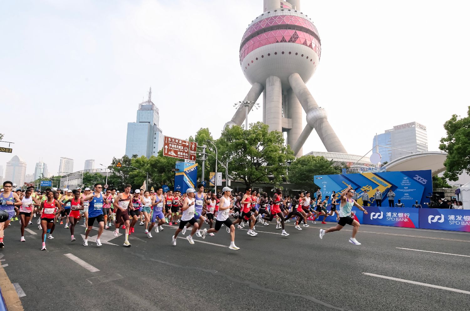 4月20日,2025浦发银行上海半程马拉松鸣枪起跑。(图片来源:中新社)
