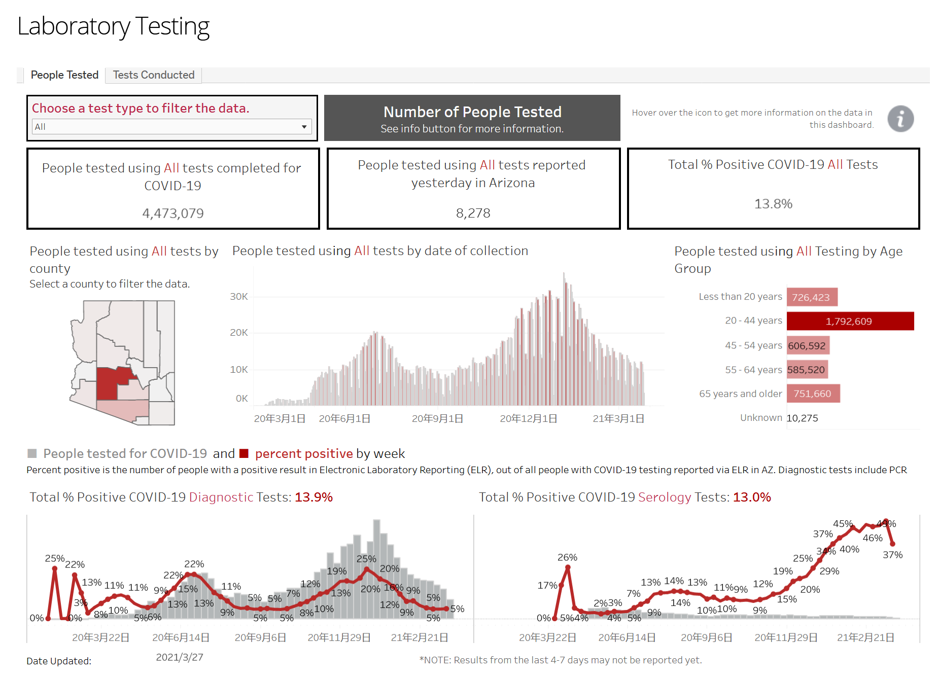 Maricopa检测14,694,确诊464例,共523,088,死亡增10人,共9,640人,接种率16.7%