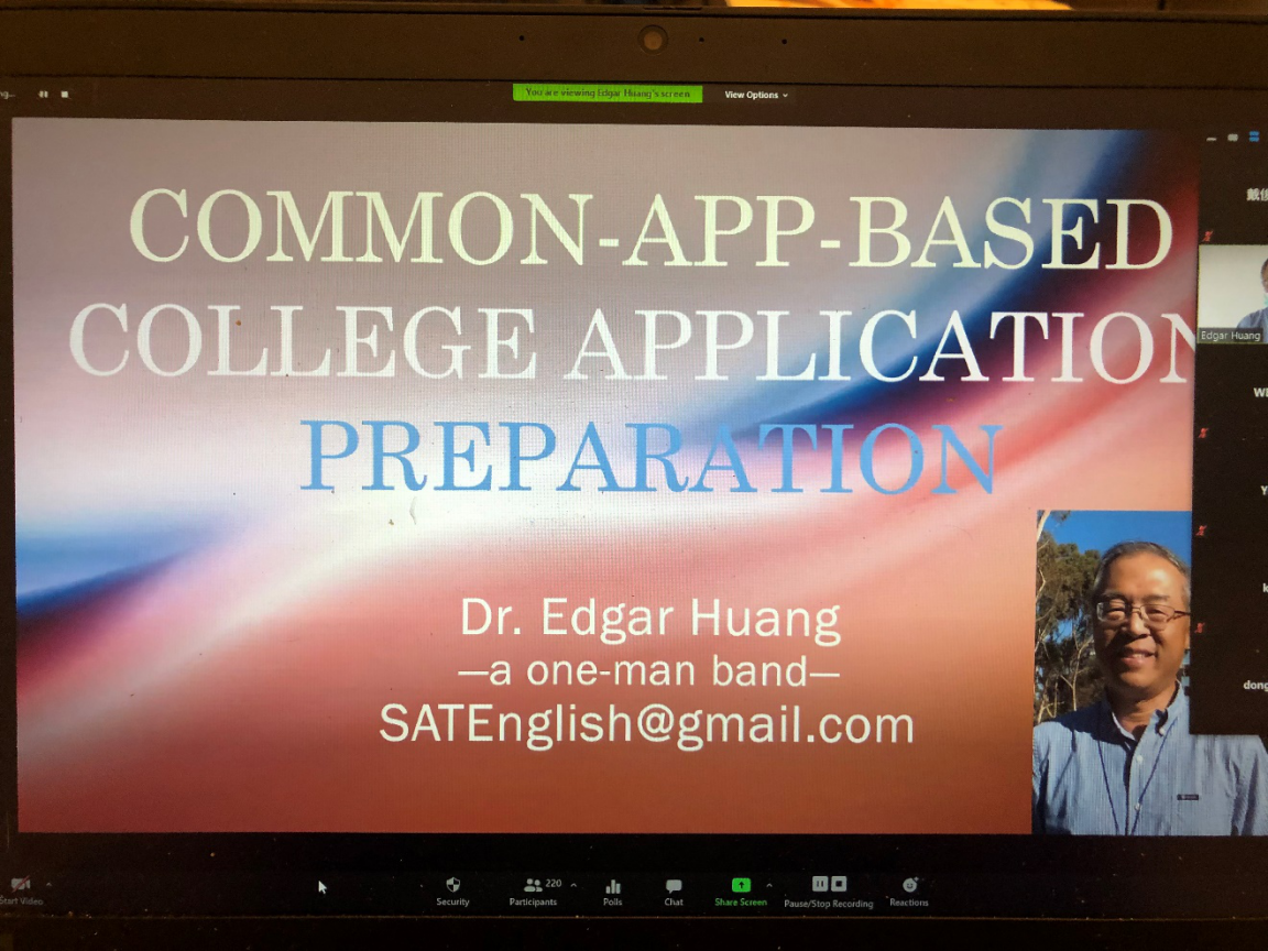 座谈会特地邀请到了北美知名大学申请专家Dr. Edgar Huang黄少华教授,黄教授的英语课在北美享有盛名,每年在美国各州培养出众多的SAT/ACT高分获得者和全美奖学金半决赛者。他还给高中生提供大学升学指导,并为更多的高中毕业生提供大学申请(尤其是申请文书)的指导,使学生进入他们的理想大学。当晚有360多名当地华人学生和家长参加了活动。