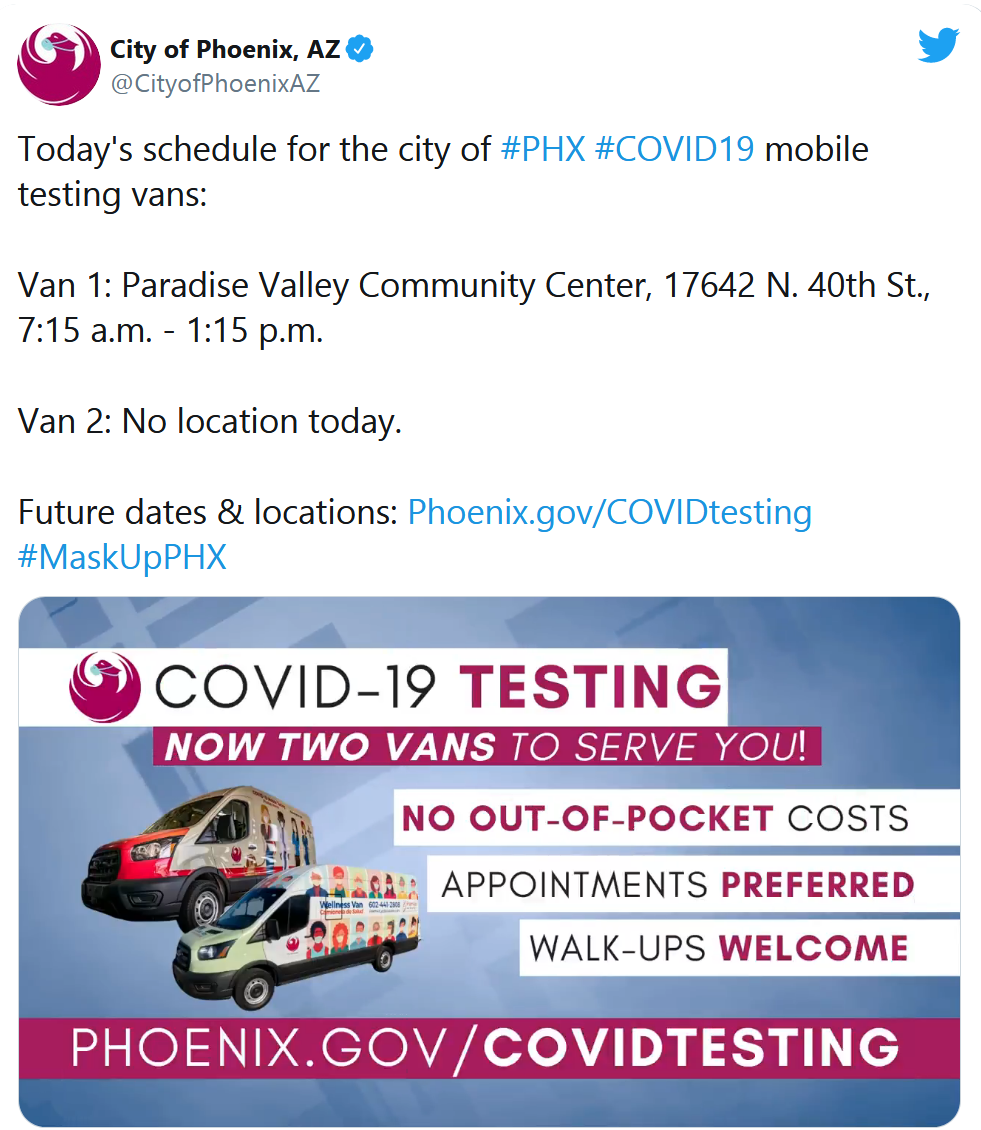 City of Phoenix流动检测车今天停靠地点: