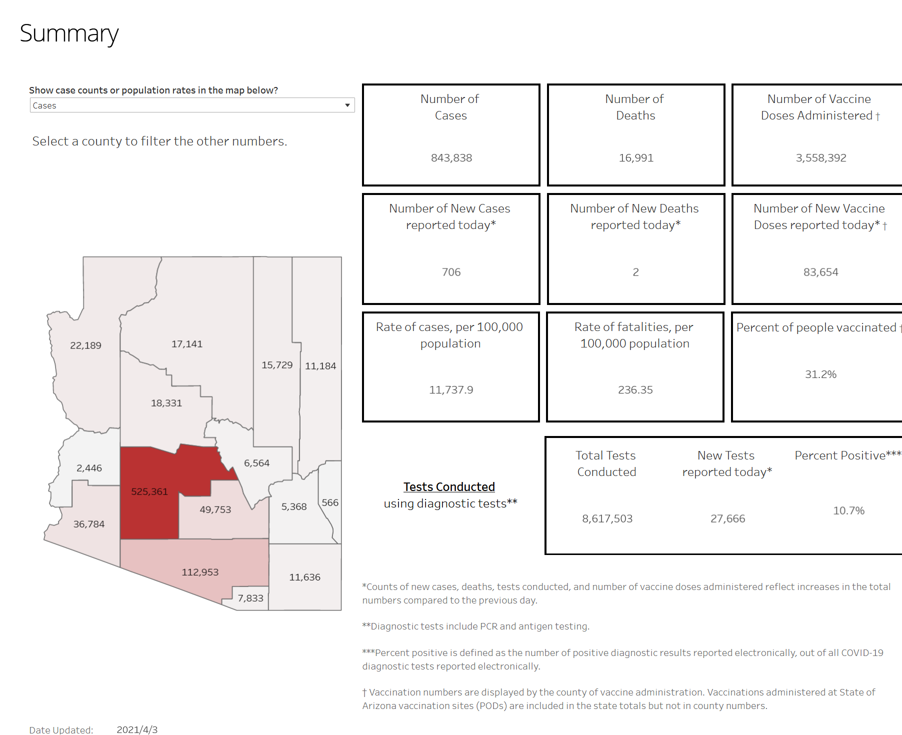 Maricopa检测15,238,确诊359例,共525,361,死亡-7人,共9,663人,接种率18.7%