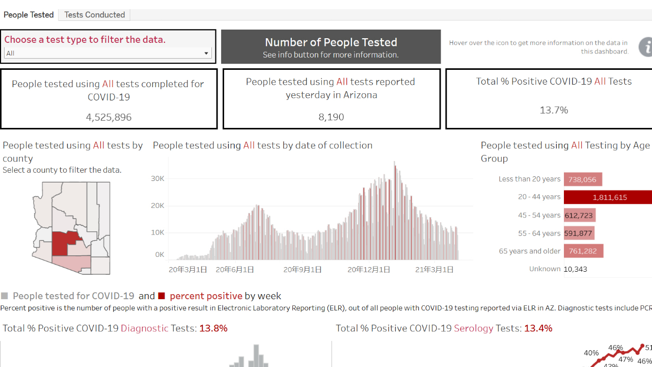 截止至周六,亚利桑那州已完成近361万剂疫苗接种,226万人完成了至少一剂注射,超145万人完成了两剂注射,全州疫苗覆盖率31.5%。