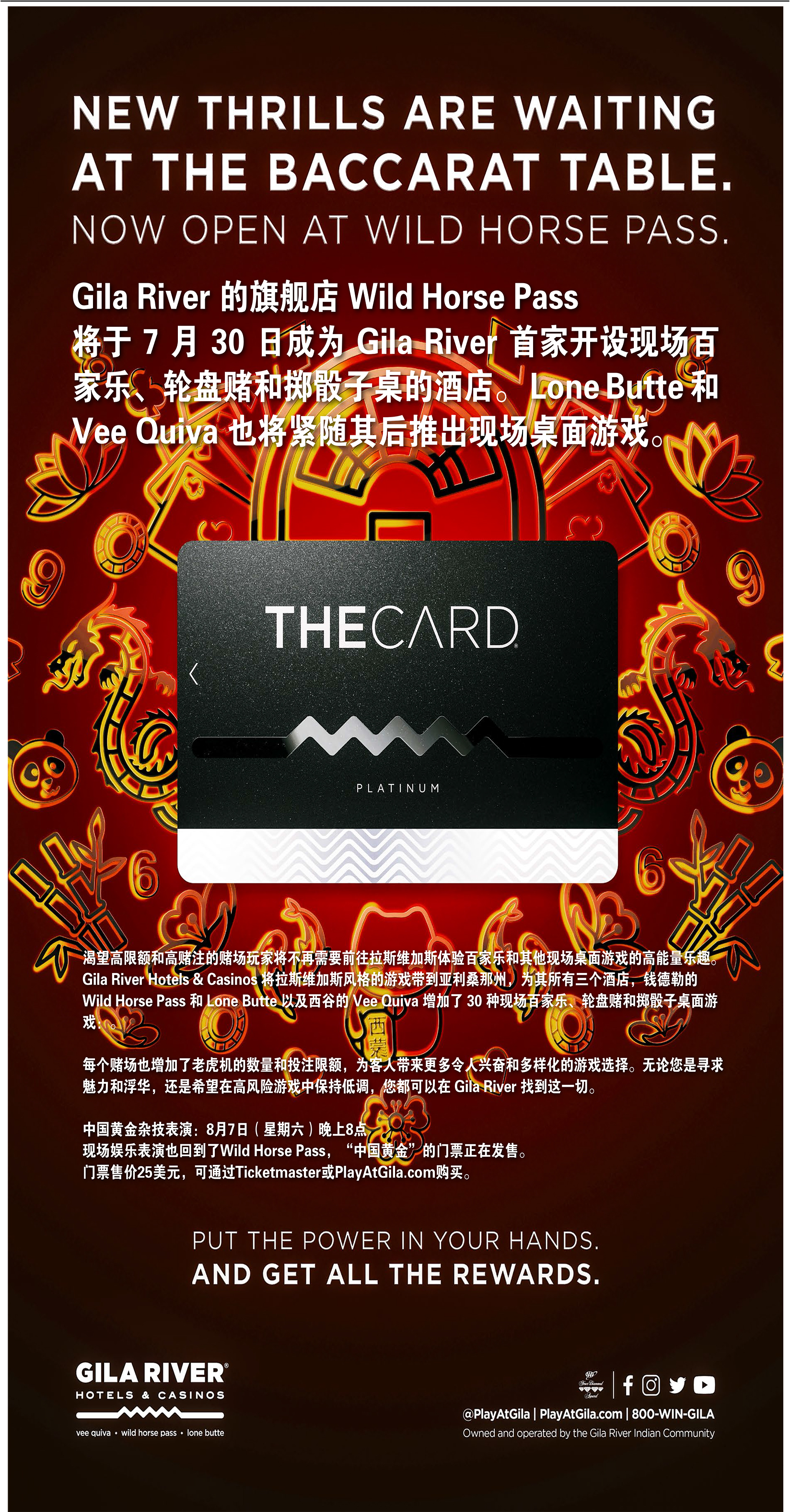 现场娱乐表演也回到了Wild Horse Pass,“中国黄金”的门票正在发售,这是一场特殊的杂技表演,它美在激烈的杂技运动和优雅的编舞之间取得的平衡。