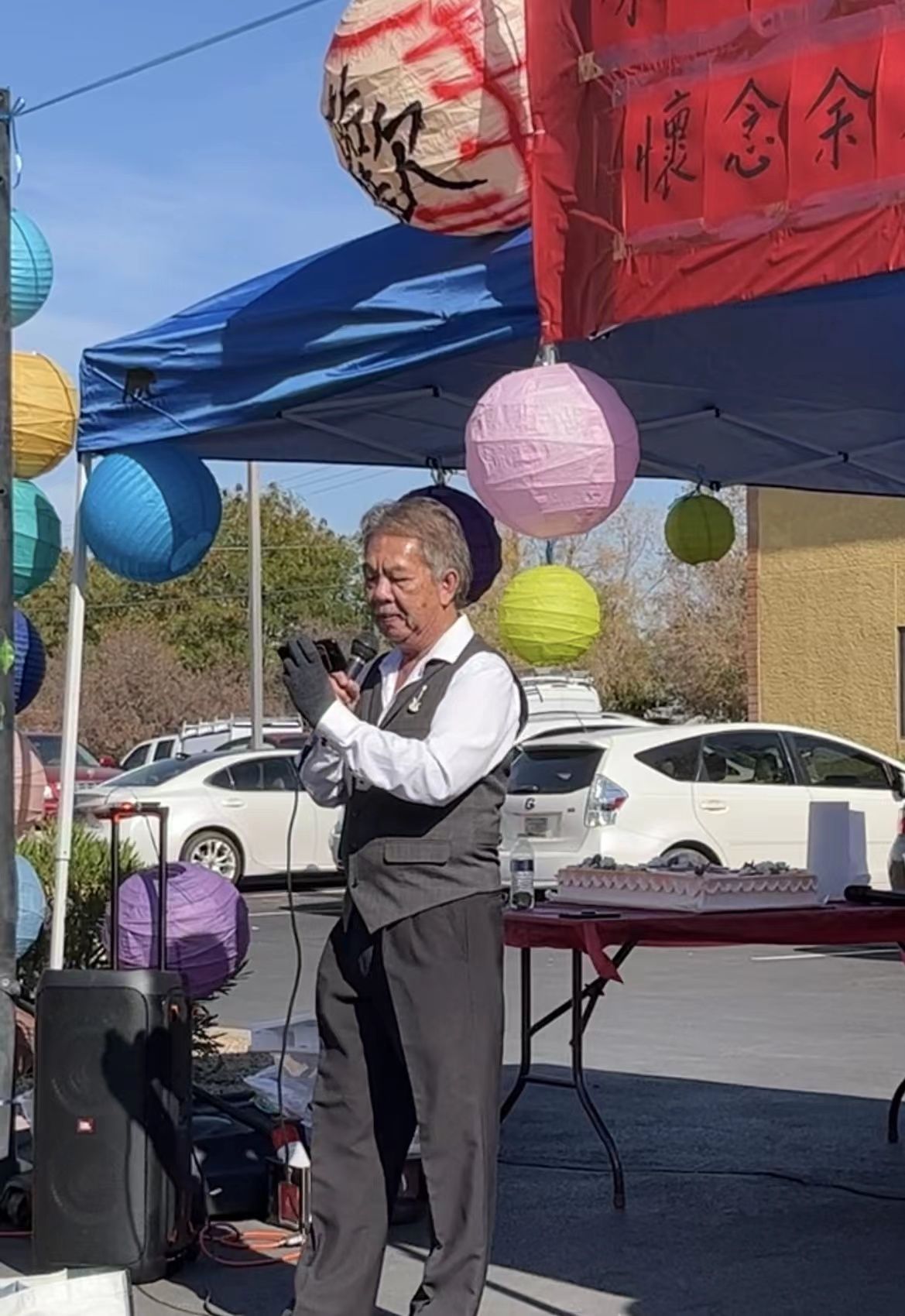 【本报讯】记者阿鸣摄影报导:感恩的季节,感恩的心。十一月二十三日,由康宁大厦主办的感恩大聚会在大厦的停车场举行,邀请康乐大夏、开心会、越华会、谭华参茸行、越南电台的CEO等约百多人参加。在这感恩的节日大家一起追思缅怀资深侨领余文劲先生,感恩他生前对侨社、对大厦住户的关爱与帮助。