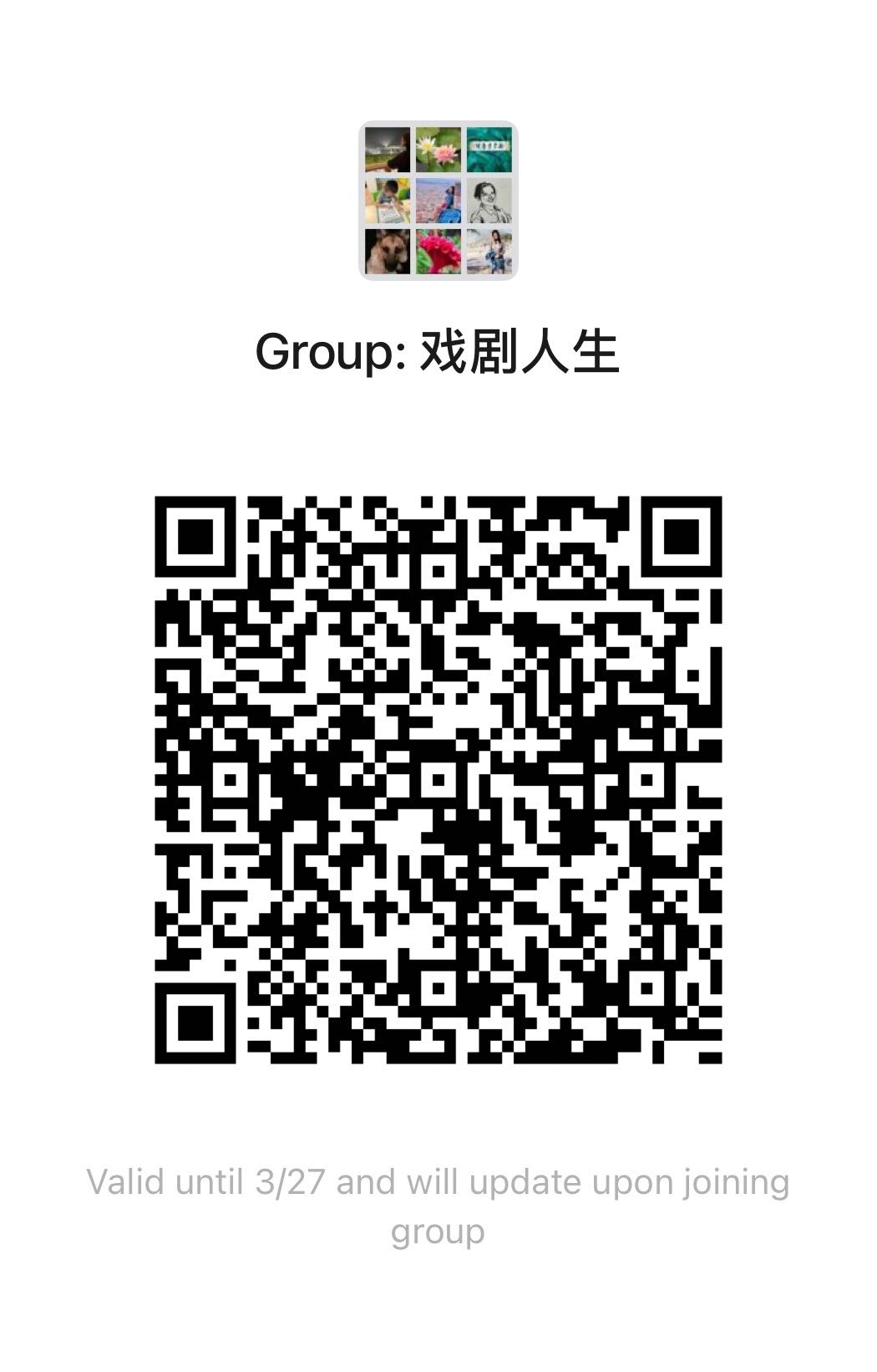 以下为戏剧人生微信群二维码,欢迎爱好戏剧的朋友一起来聊聊: