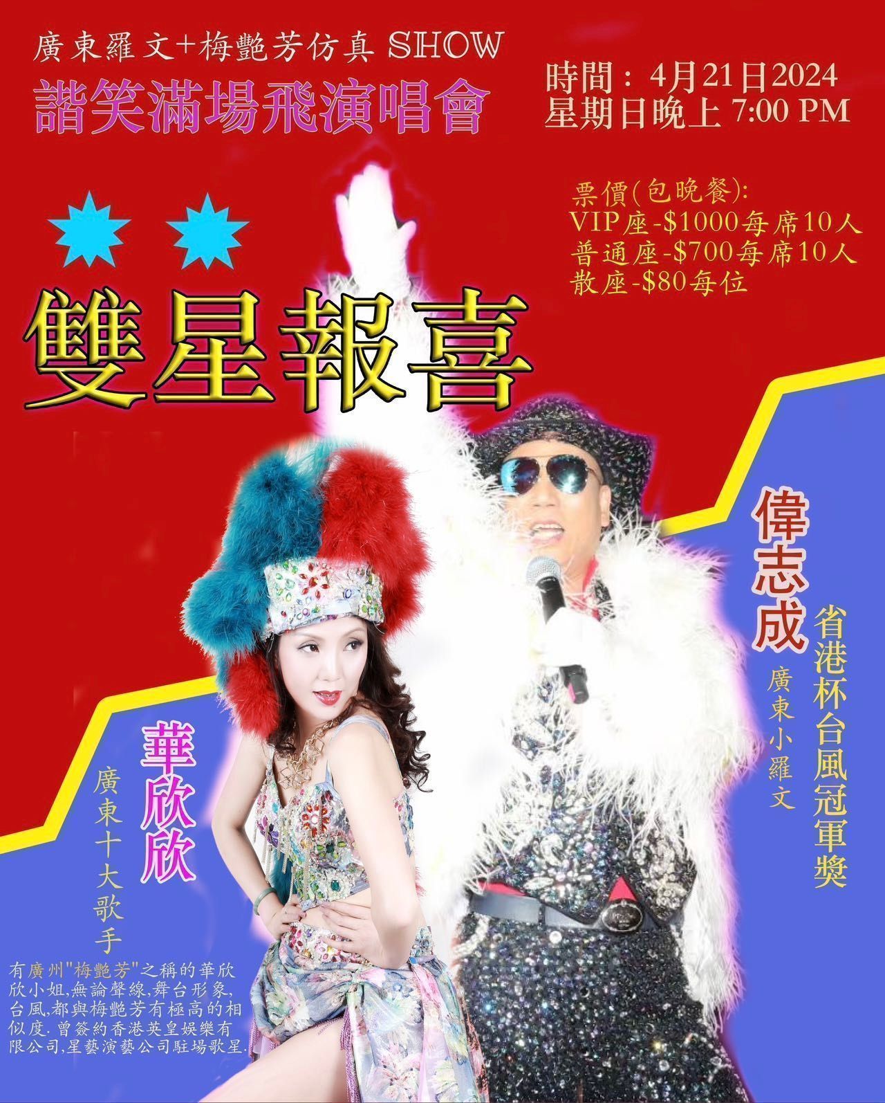好消息!六福酒家在本月21日(星期日)舉辦廣東羅文+梅艷芳仿真show. 諧笑滿場飛演唱會!門券在熱烈搶購中。