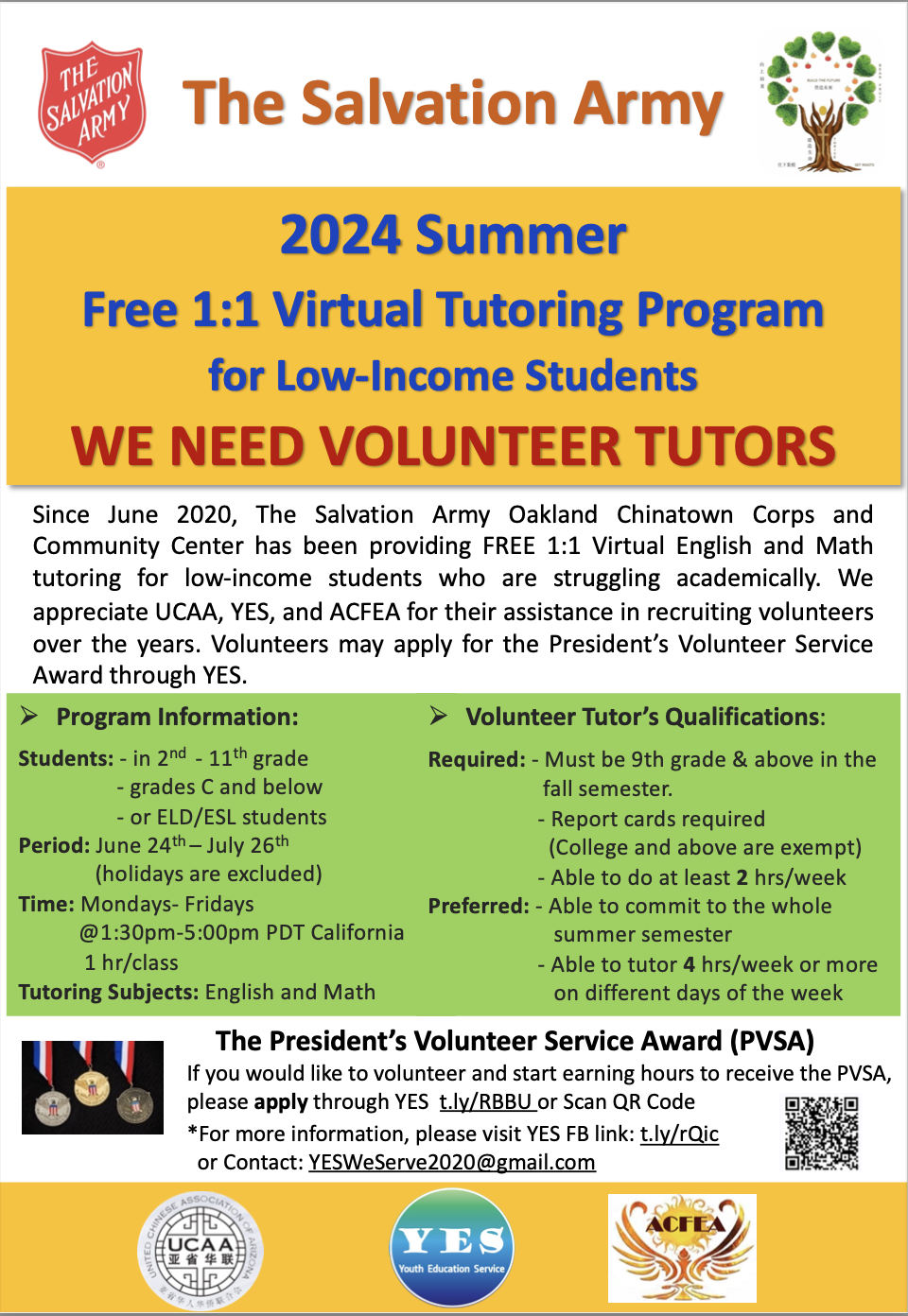 总统志愿服务奖(PVSA)如果您想志愿服务并开始赚取时间来获得PVSA,请通过YES t.ly/RBBU或扫描二维码申请*有关更多信息,请访问YES FB链接:t.ly/rQicor