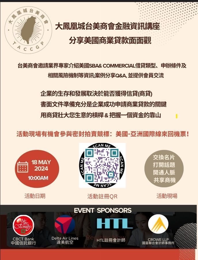 大凤凰城台美商会邀请您参加这个讲座,您將瞭解中小企业贷款的优缺点,认识到其他不同类型的商业贷款,以及如何使您的企业可以到纽约上市。