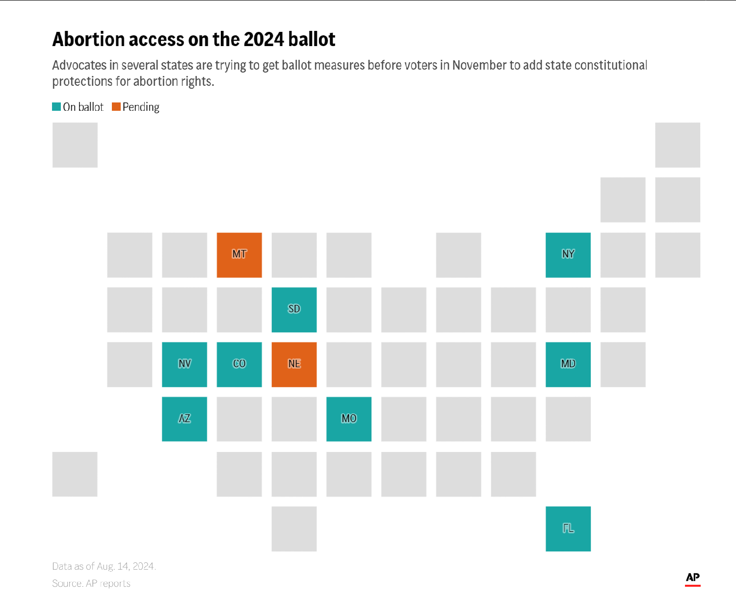 这些决定意味着,今年秋天,六个以上州的选民将决定堕胎措施。这些提案可能会提高投票率,并可能影响总统、国会、州长和其他州政府官员的选举。