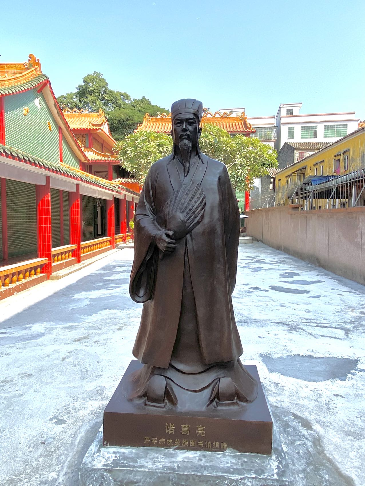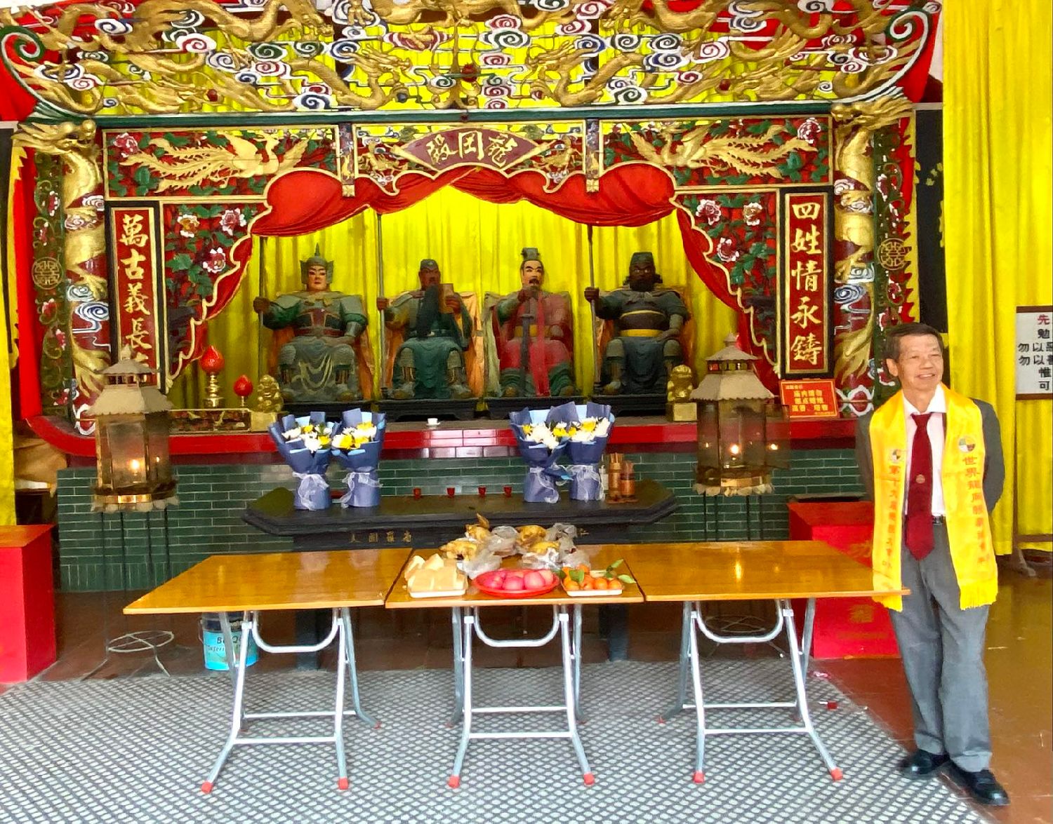 “五湖世谊是龙岡基石,四祖遗志成古庙灵神。”