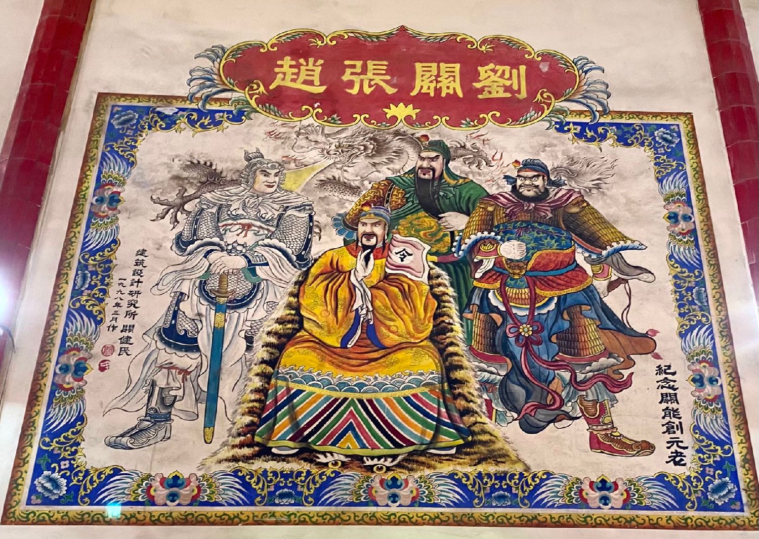 龙岡古庙内彩绘三国誌缩影,特显四姓先祖刘关张趙彪炳战跡,画功优美生动,令人目不暇接,叹为观止!