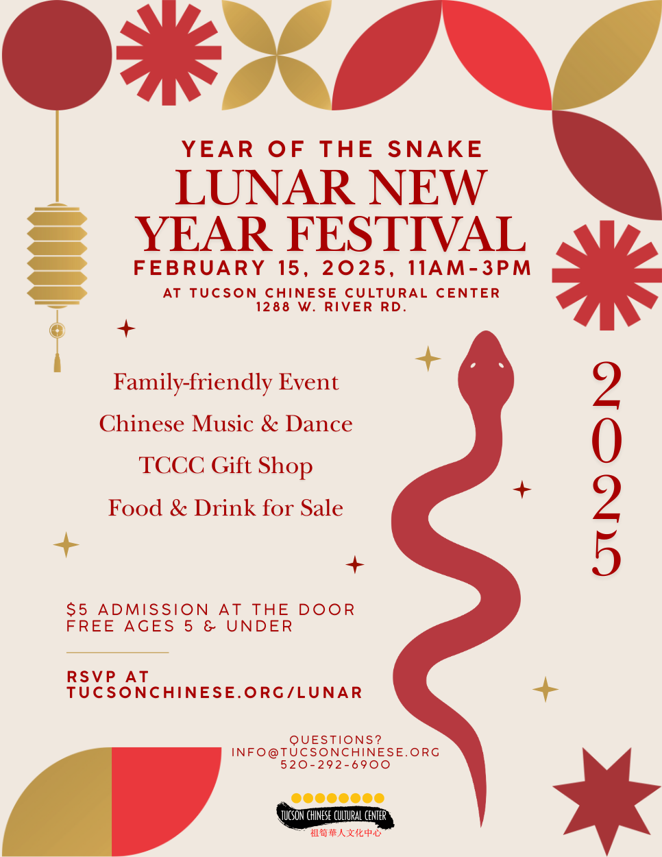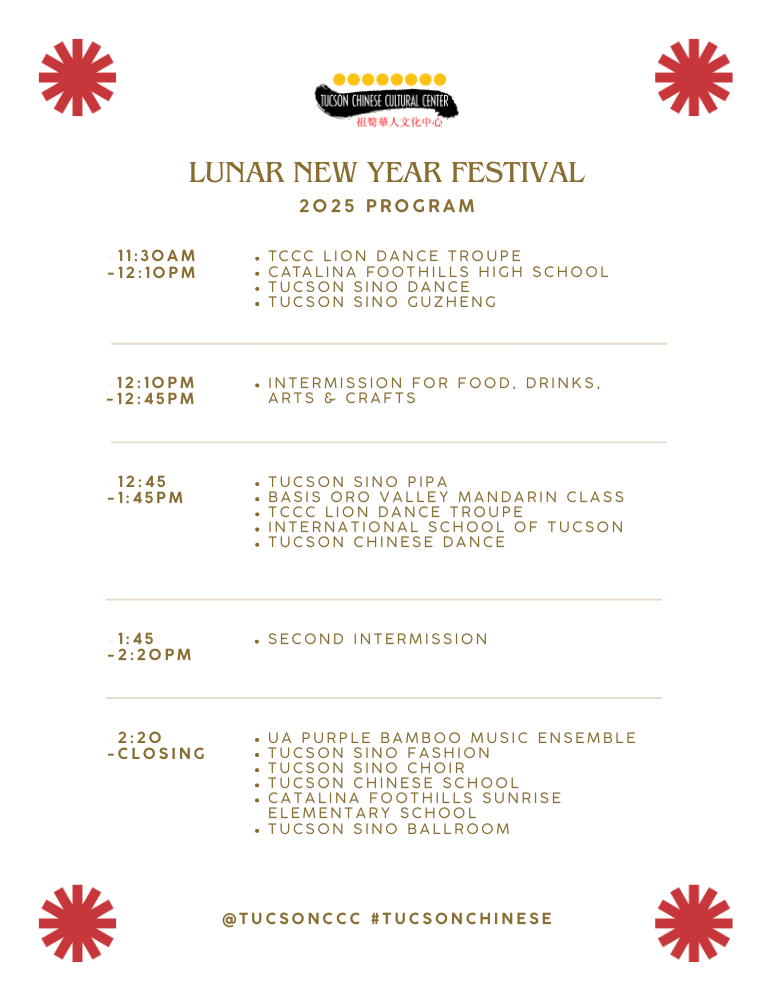本周六,图森中国文化中心(TCCC 1288 W. River Road)将举办一年一度的(蛇年)春节庆祝活动。