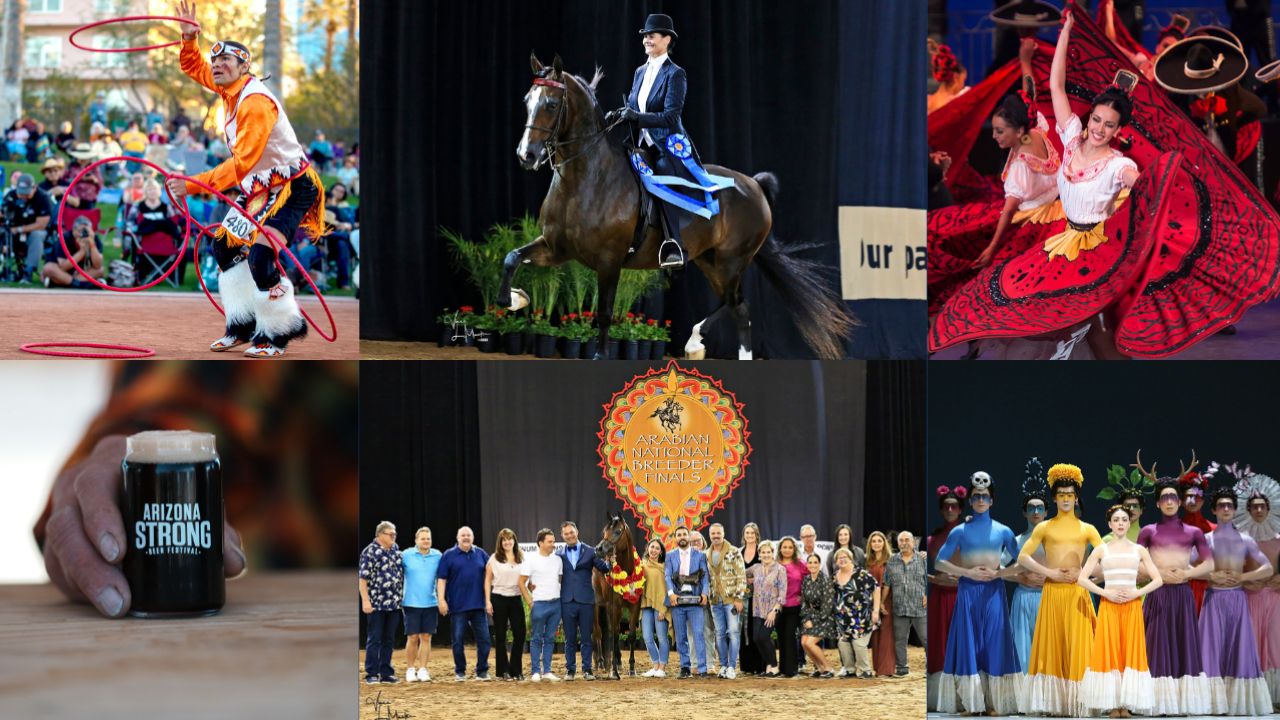 斯科茨代尔阿拉伯马展正在山谷庆祝70周年!周五至周日,在斯科茨代尔西部世界观看世界上最大的阿拉伯马展。享受比赛、购物博览会,以及两千多匹马争夺超过100万美元的奖金。