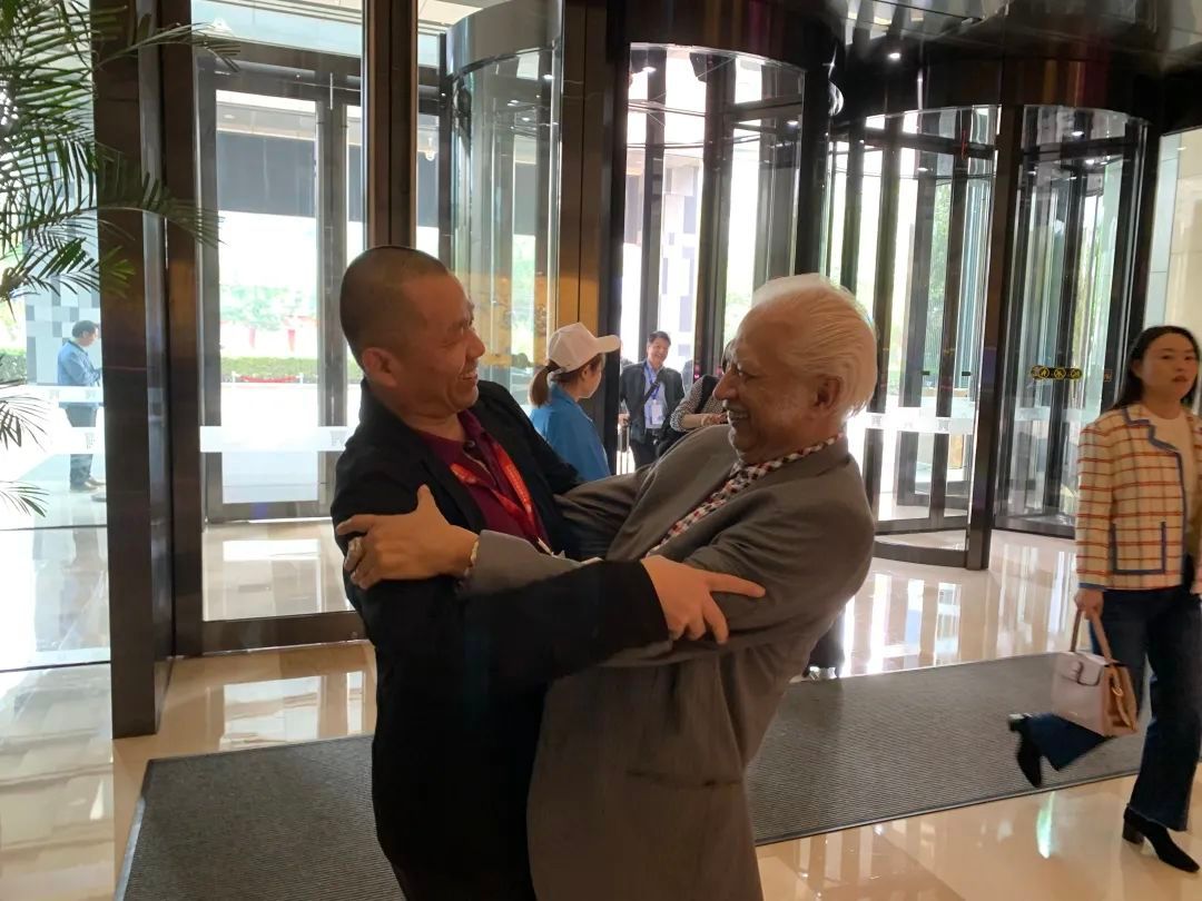 ▲第十届世界华文传媒论坛上夏春平与老朋友印尼《国际日报》董事长熊德龙先生相会