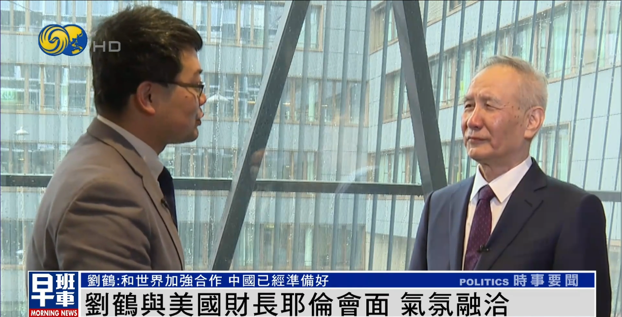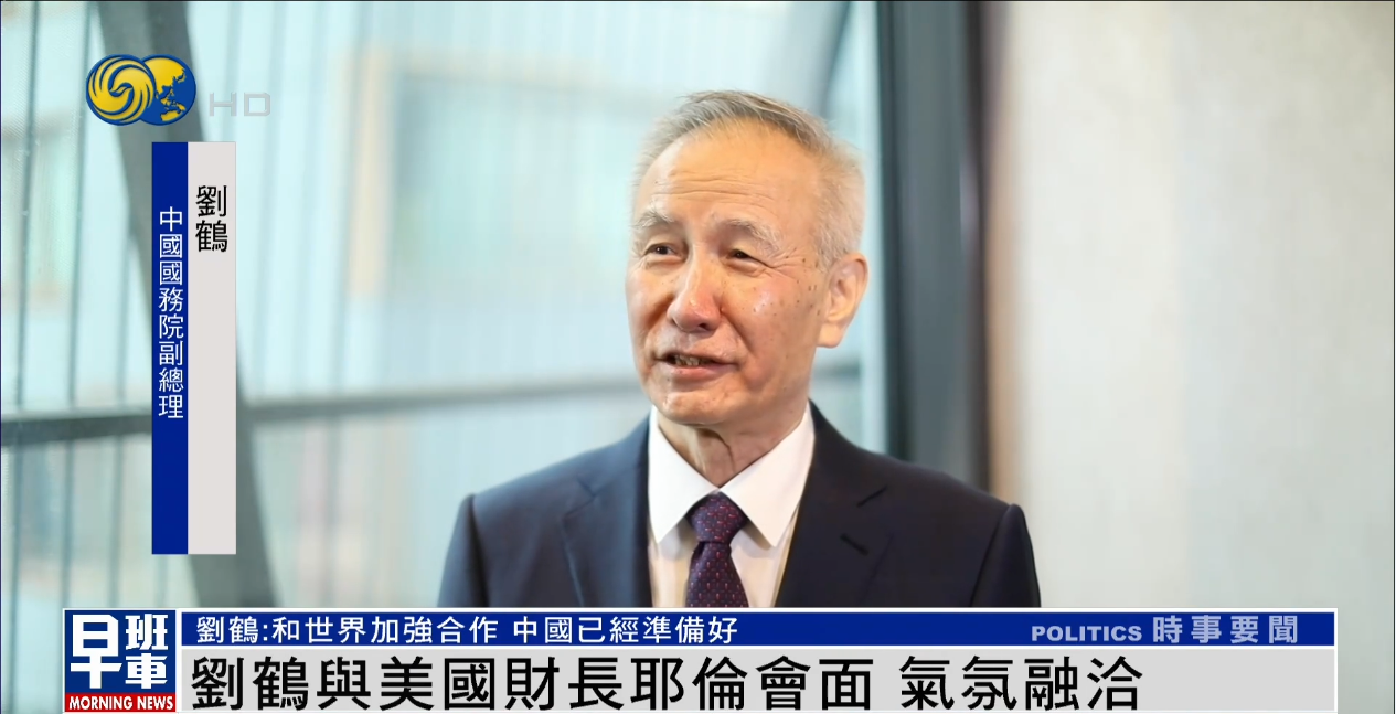 中国国务院副总理、中美全面经济对话中方牵头人刘鹤,18号在苏黎世同美国财长耶伦举行了约三小时会谈,两国政府财政及商务部门高级别官员陪同出席。刘鹤在会谈后接受凤凰卫视记者曹劼的独家专访,表示这次与美方会谈气氛融洽,成果积极,涉及议题广泛。他希望这次瑞士之行让全球市场看到,中国在经历了疫情之后又回来了,并会加强与世界的合作。