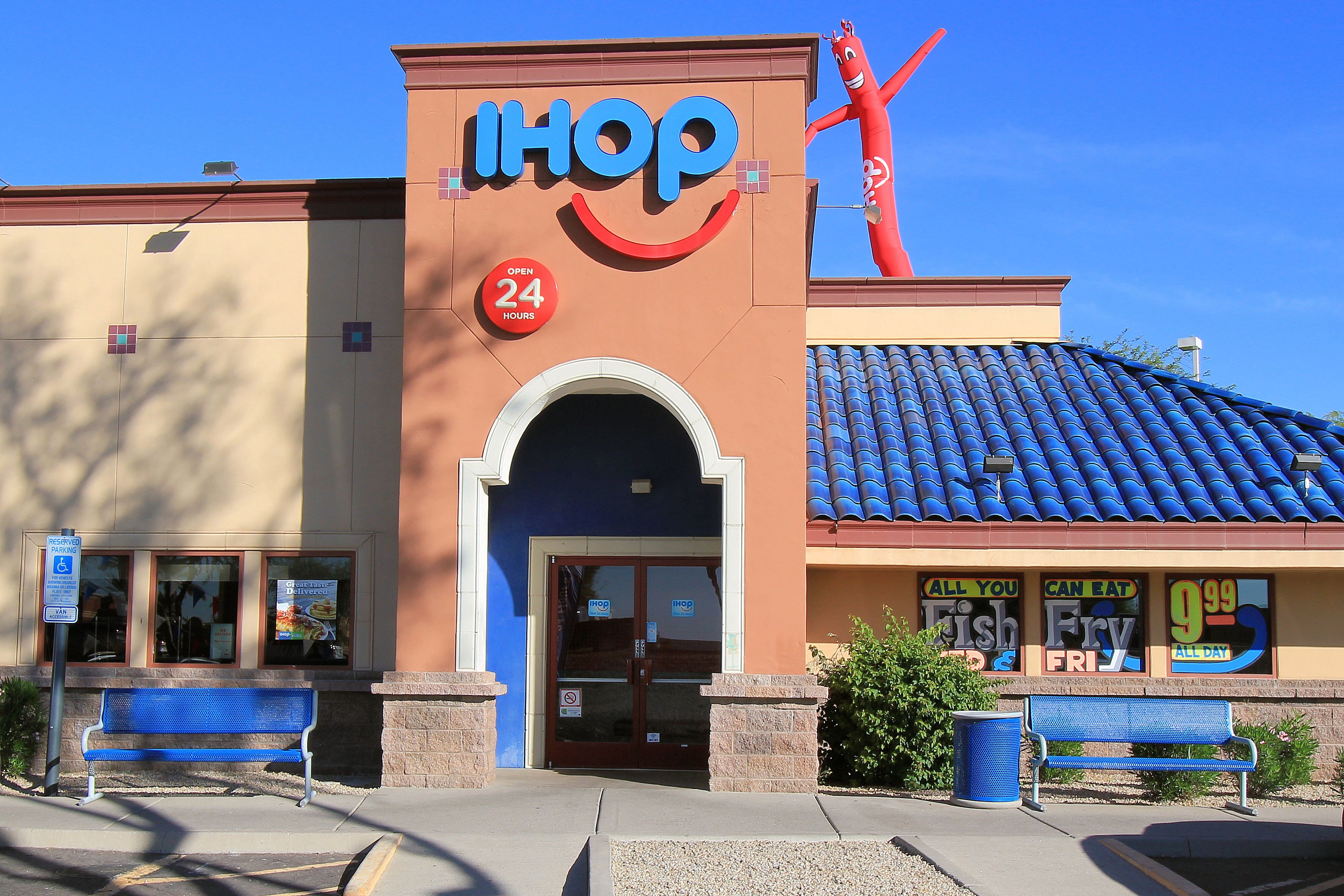 IHOP在全球1,750多家餐厅供应煎饼,是一家家庭友好型企业,以巧妙的品牌和标志性菜单而闻名,例如Rooty Tooty Fresh'N Fruity Pancakes和Signature Pancake Sliders。它最初是一家只供应早餐的餐馆,但现在餐厅提供三明治、汉堡和其他午餐和晚餐食品。