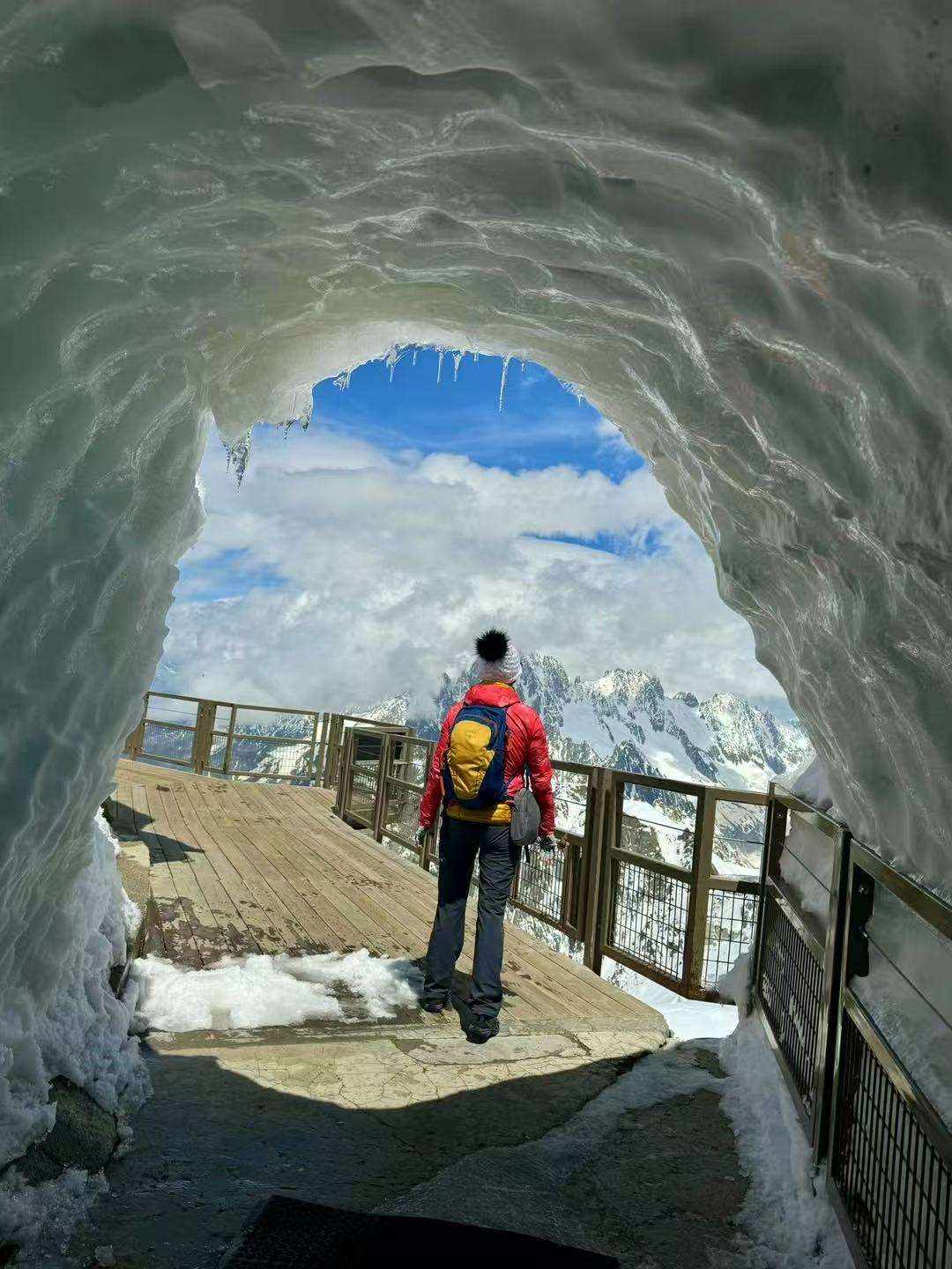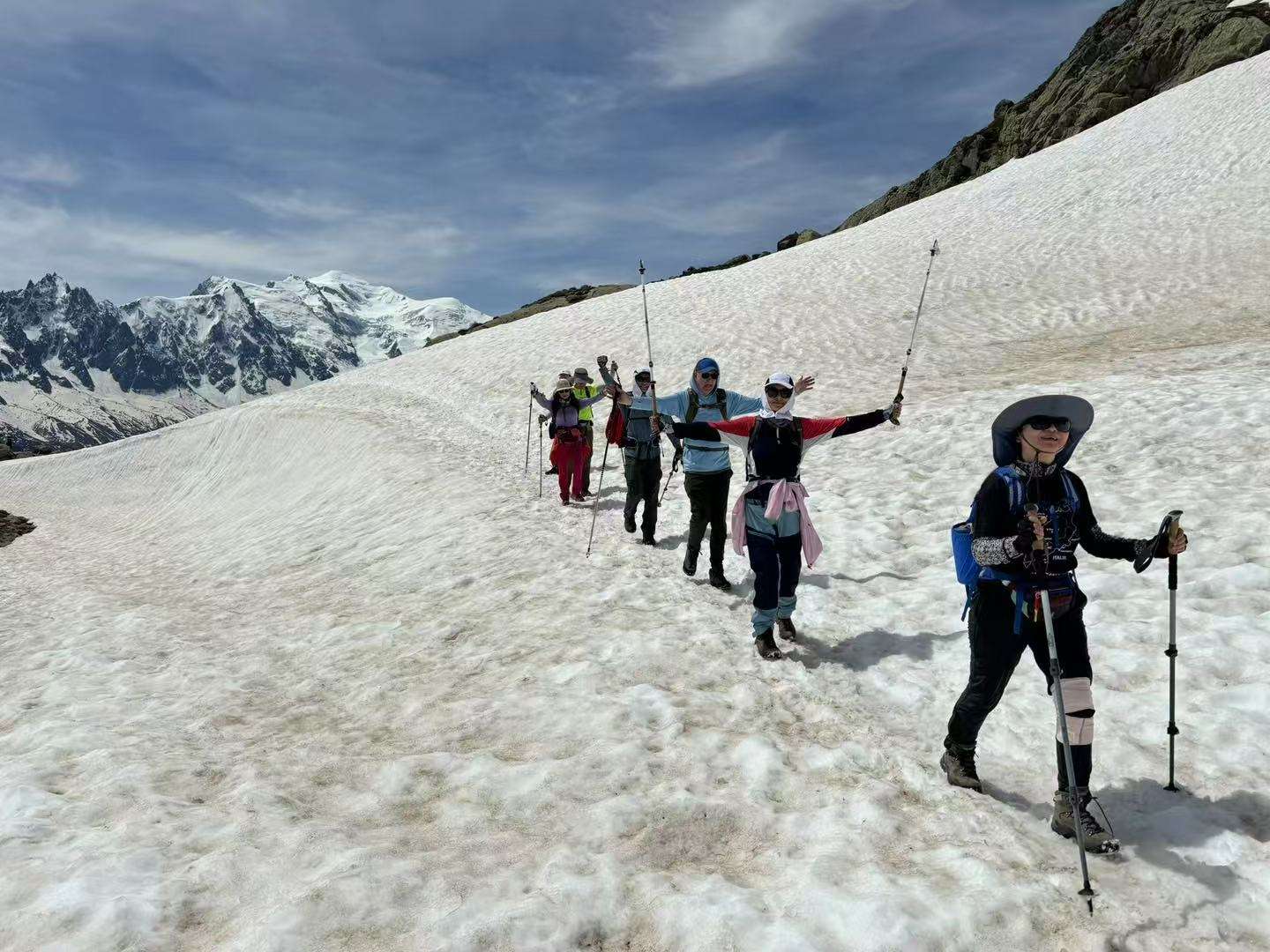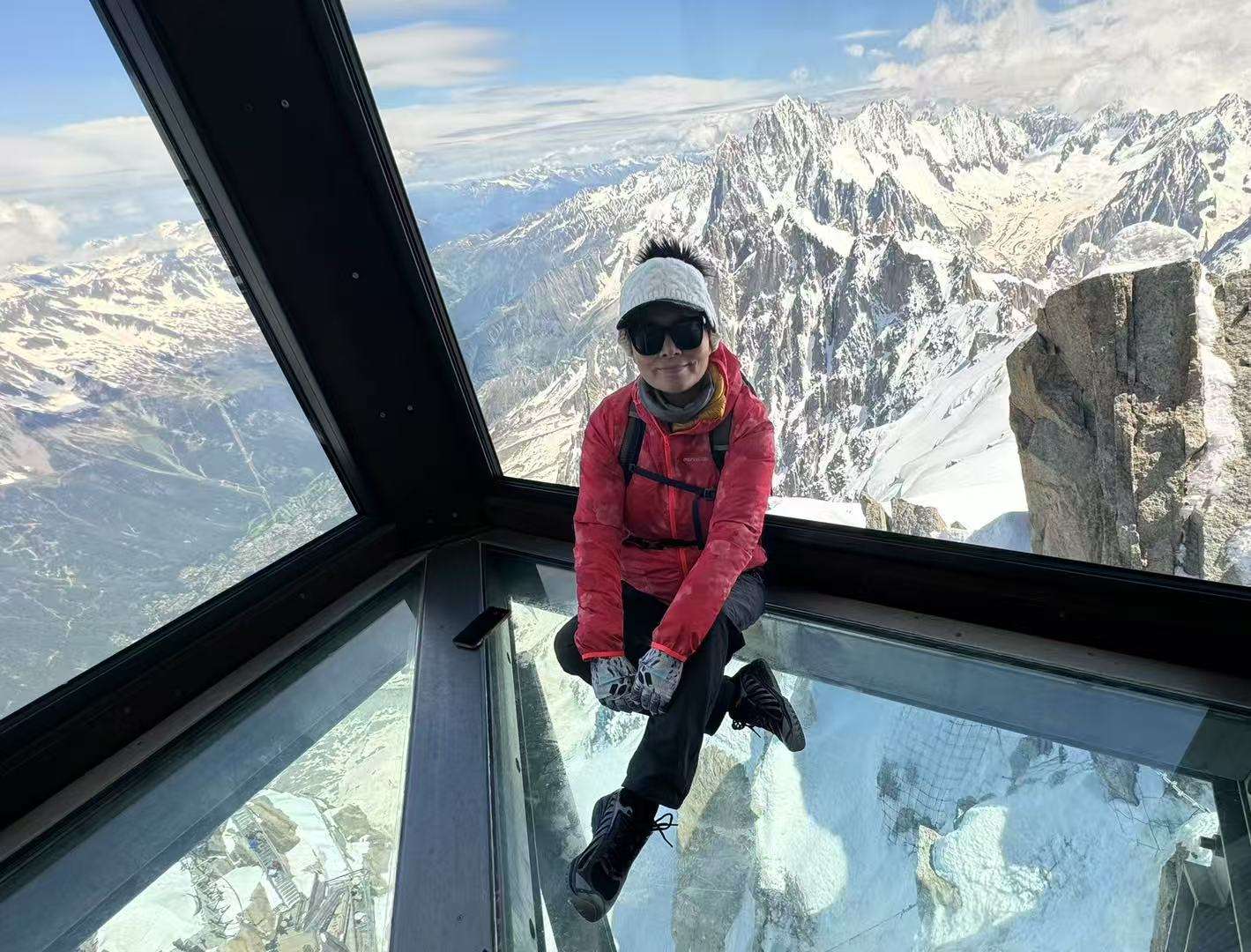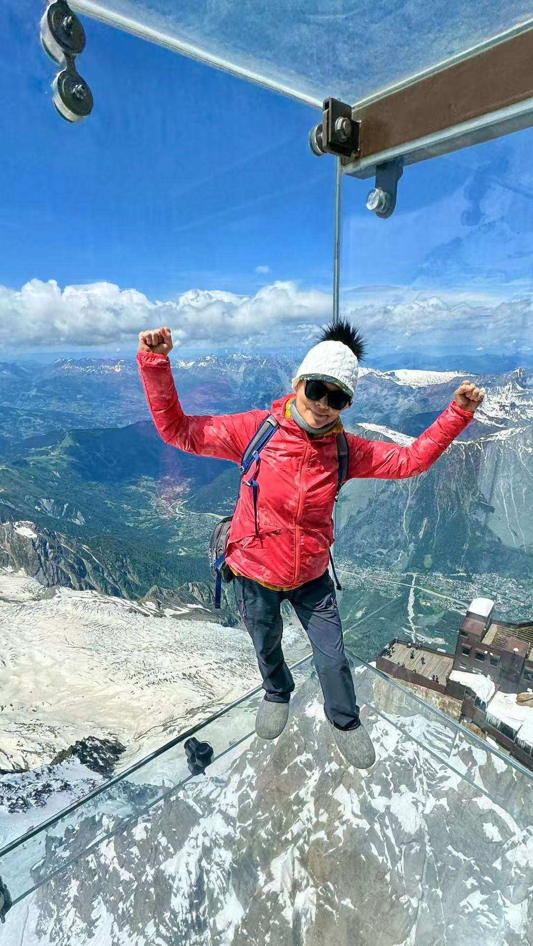 我们14人的徒步小队到达法国霞慕尼的当天,小雪就安排我们坐缆车登上南针峰海拨近4千米的观景台。