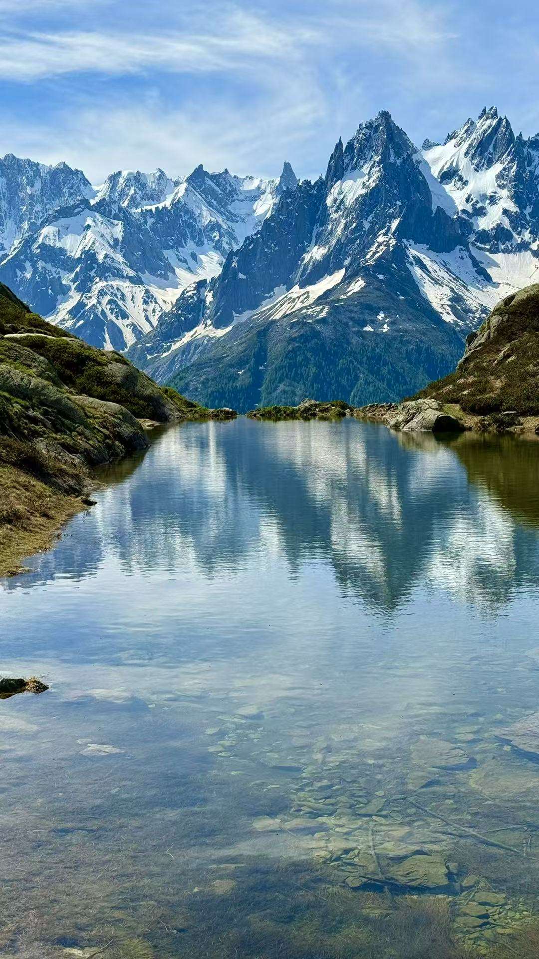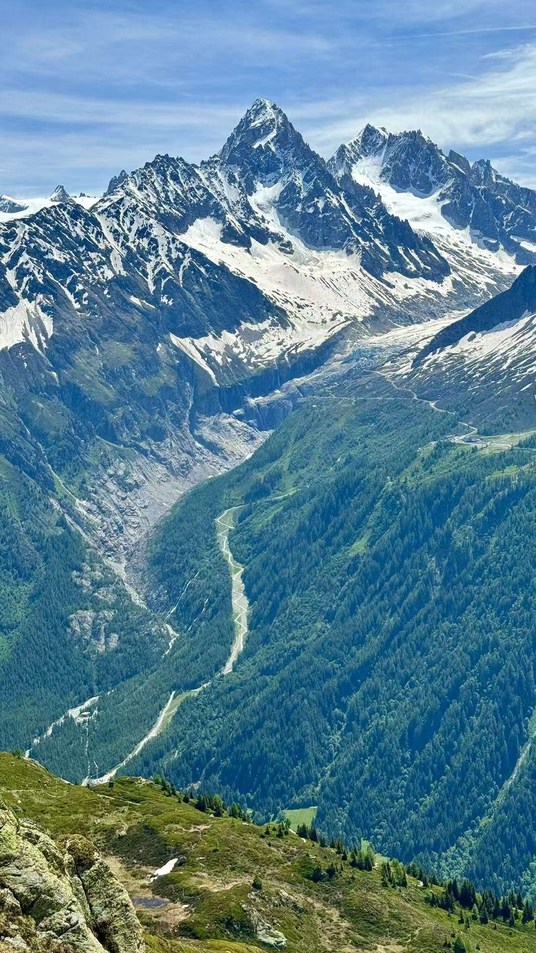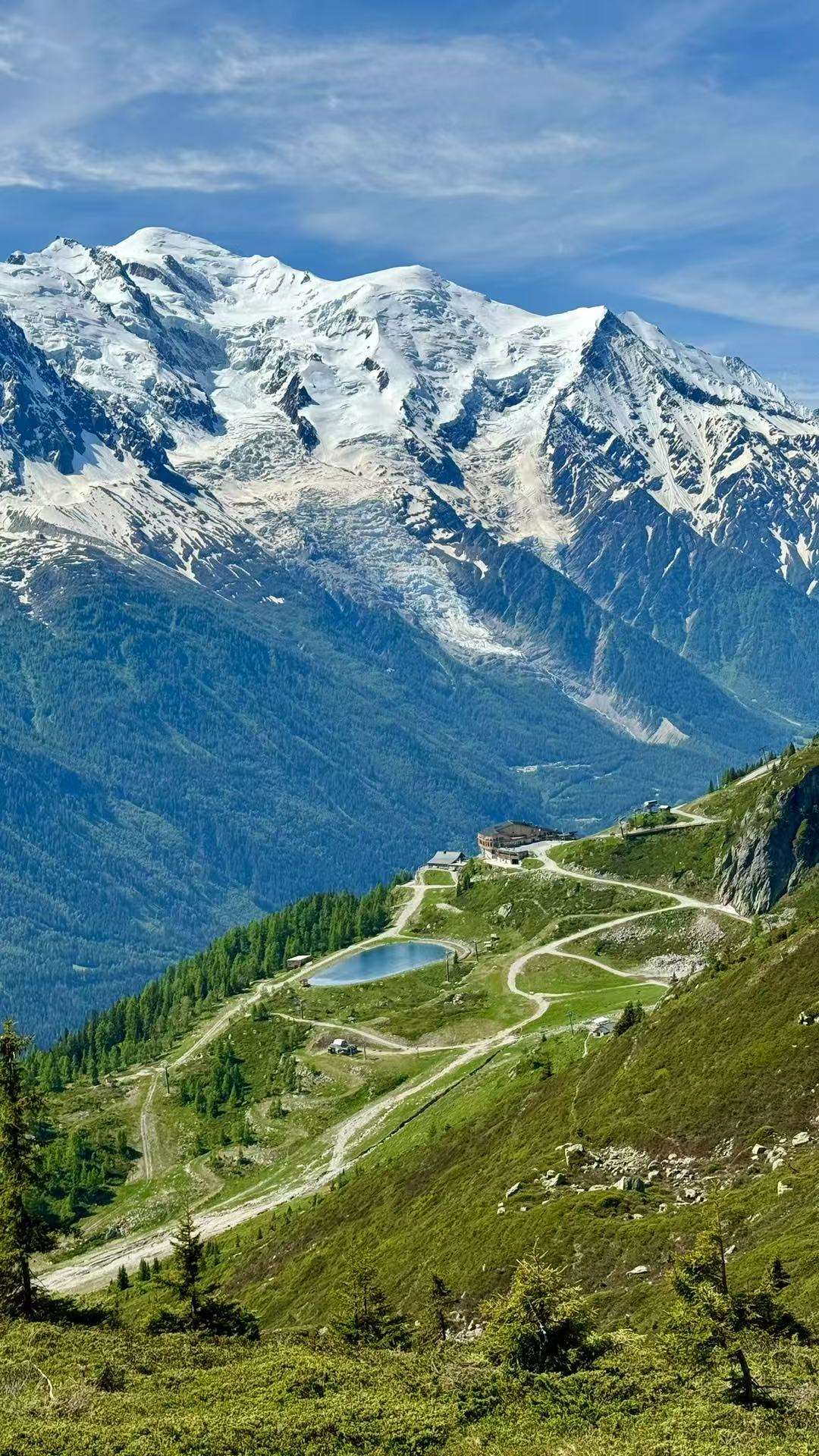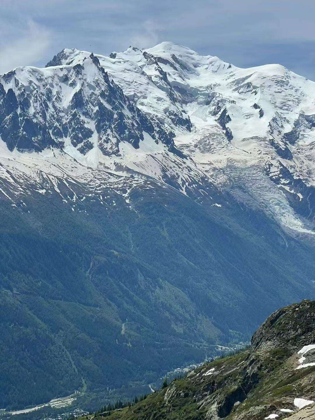 六月的勃朗峰,如同刚从冬日的沉睡中渐渐苏醒,带着寒冬的余韵,又满怀着春日的生机。