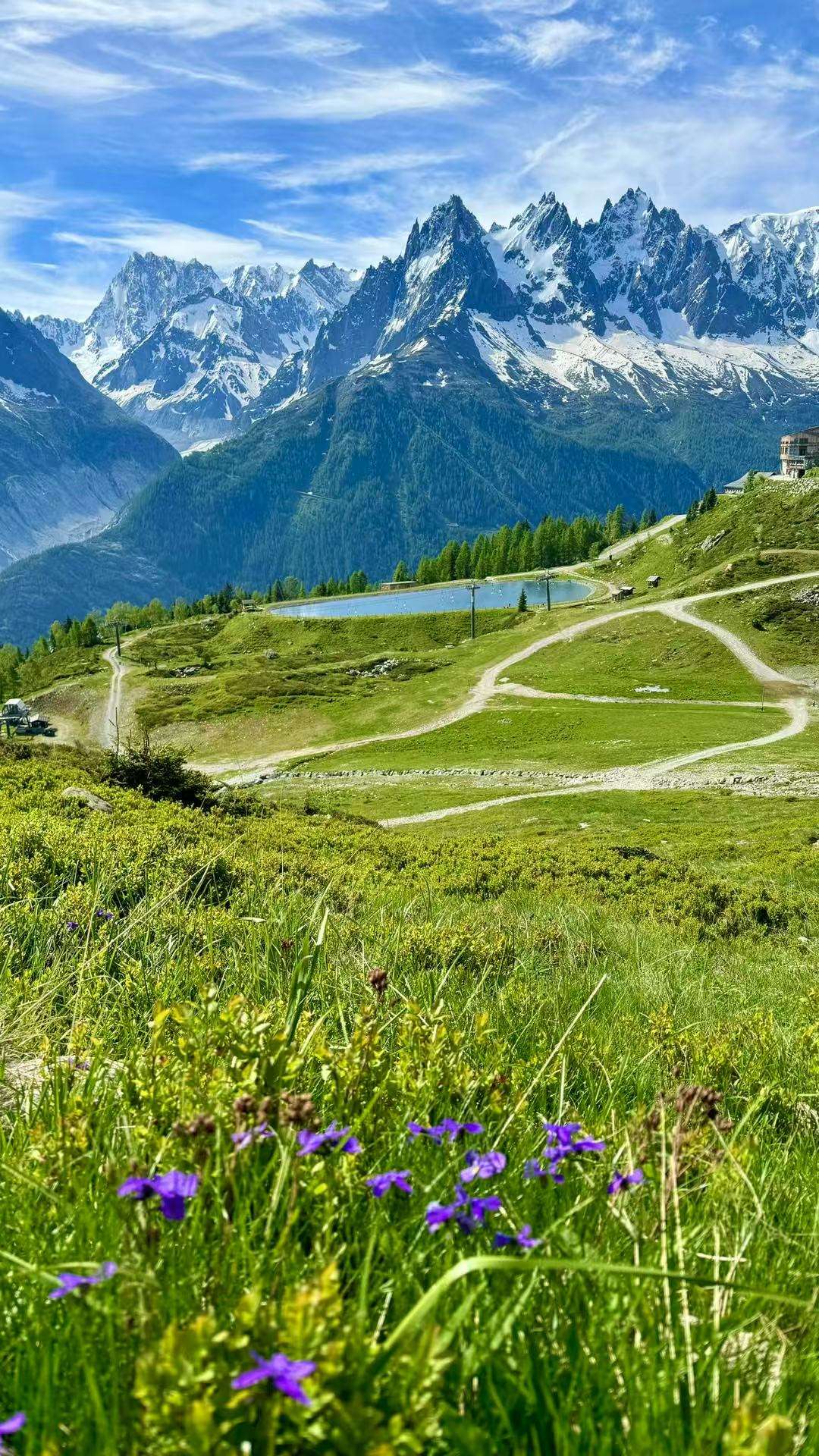 沿路,高山的积雪逐渐消融,化作清澈的溪流,鲜花悄然点缀草甸,与新生的嫩绿共同谱写了一曲阿尔卑斯山春天的交响乐。