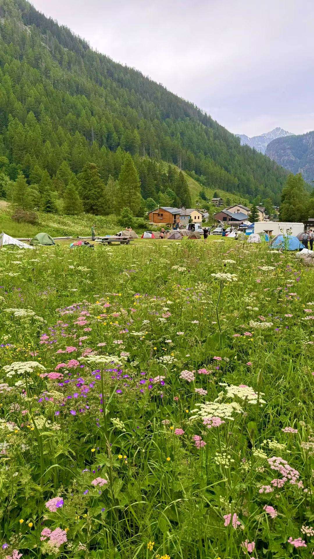 雨水夹汗水,水流满面,艰难攀登。2小时后,雨过天晴,阿尔卑斯山以一片片绚丽的花海犒劳了大家。