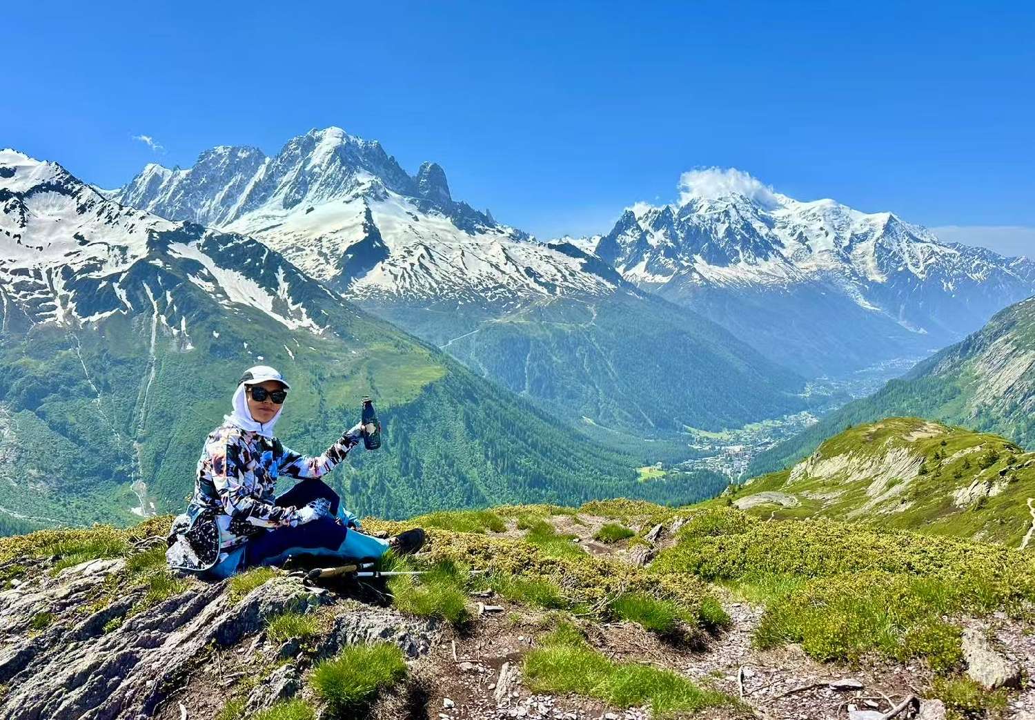 走累了、喝一口。我看着前方勃朗峰高耸入云,心中那种辽阔和自由难于言喻。