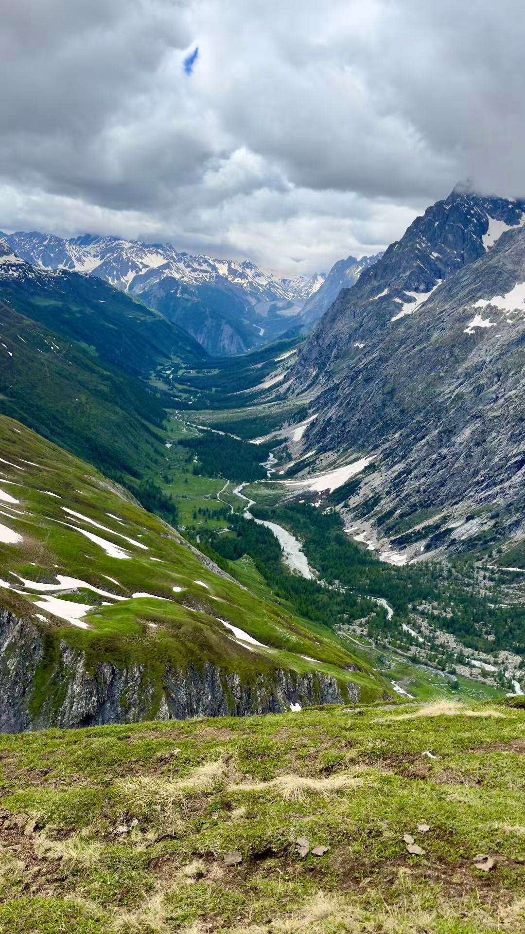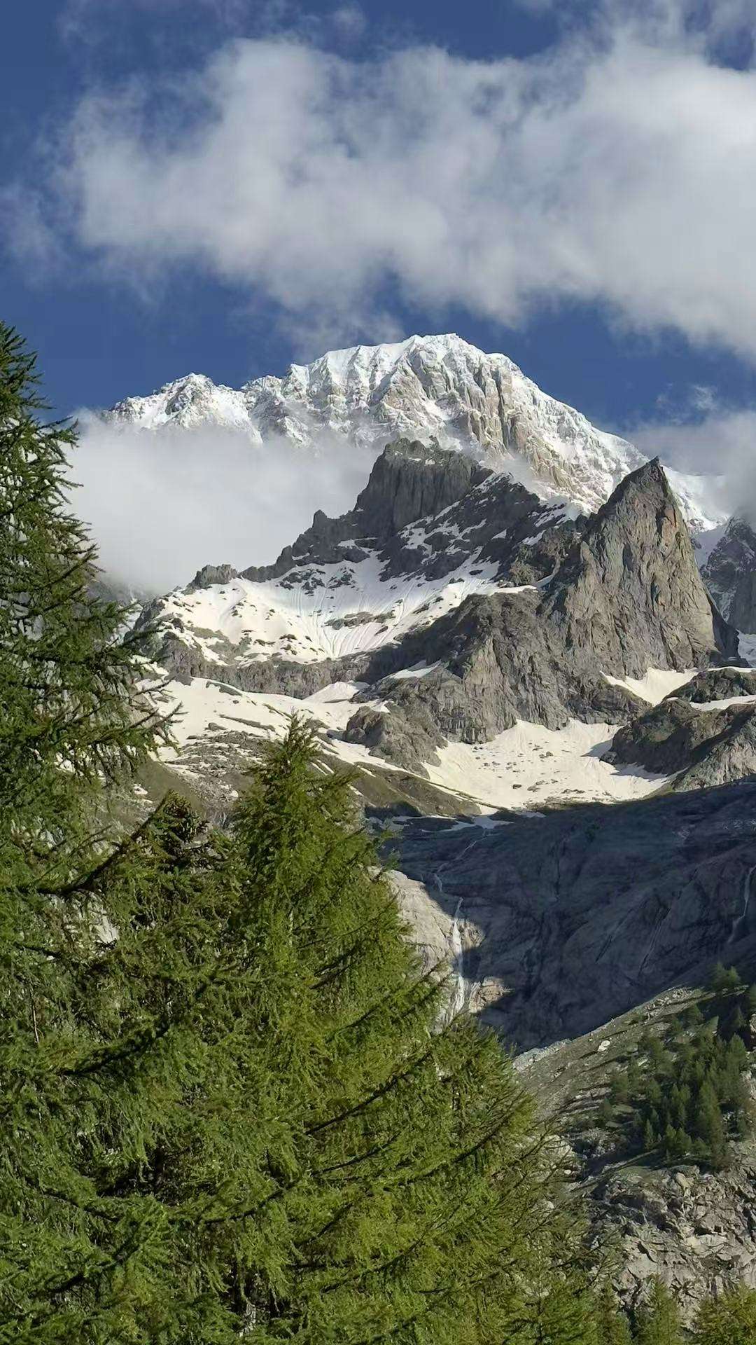 越过险境,站在意大利的土地上仰首眺望,入眼处就是欧洲最高的勃朗峰,雪山冰川仿佛触手可及,洁白的积雪和蔚蓝的天空,一路风光旖旎。