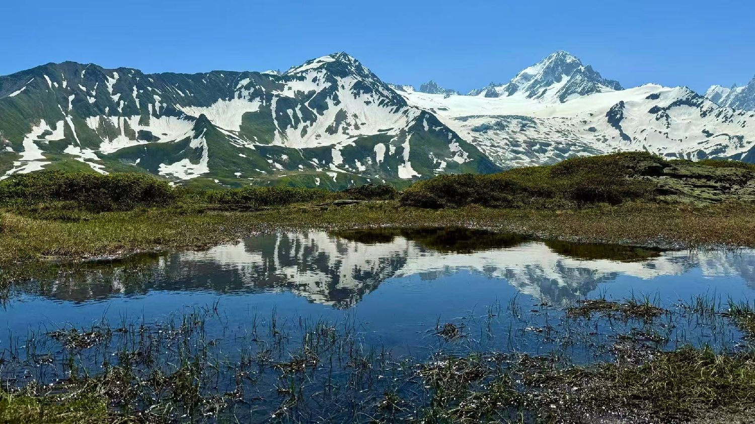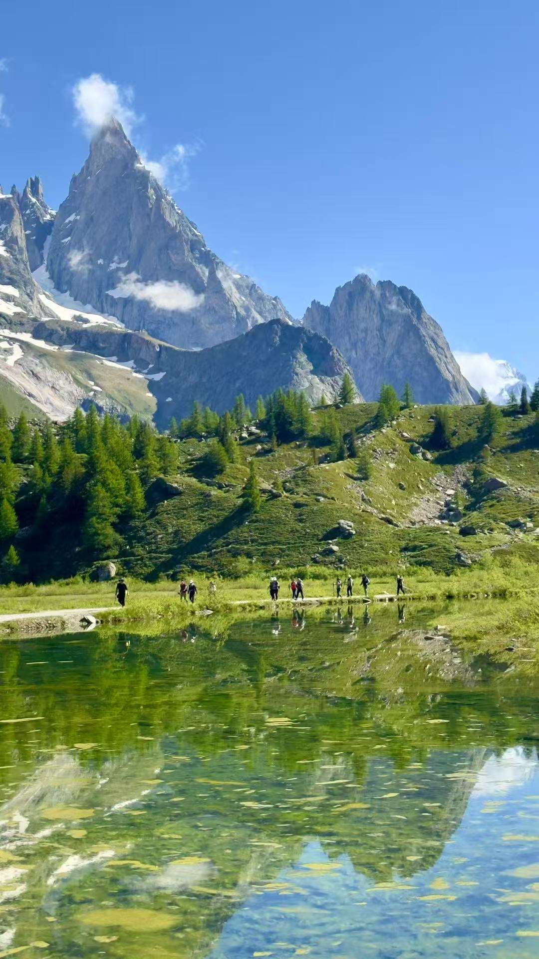 风吹过,湖面的倒影微微荡漾,像是雪山在呼吸。我握着手机的手垂了下来,突然觉得拍照是多余的,就怎么站着,让眼睛变成永不褪色的底片。