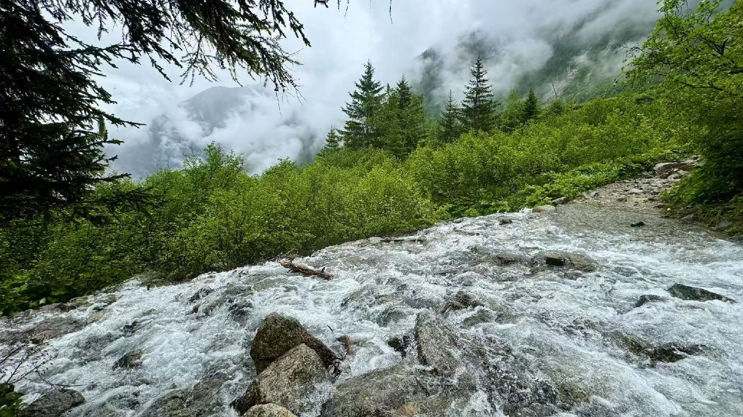 山里的天气变化莫测,开始打雷下雨了。当雷声渐渐消散,雨后的山谷宛如被洗净一般,空气格外清新,带着湿润的青草与泥土的芬芳。我深深地吸一口清新的空气,安抚下自己那颗差点被吓崩了的老心脏,默默感受大自然最无私的馈赠。